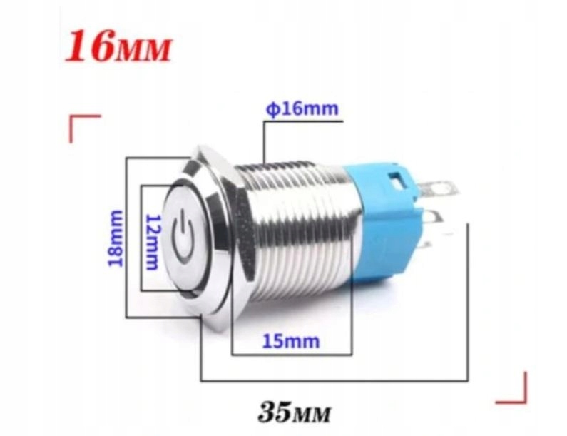 В комплект входит:Кнопка с подсветкой 16мм, резиновая прокладка, гайка