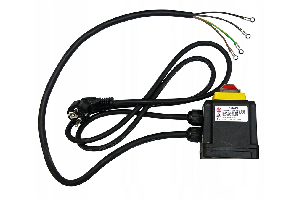 Однофазный электромагнитный переключатель со вилкой и кабелем, используемый в электродвигателях. Выключатель имеет встроенное реле, отключающее двигатель в случае отключения электроэнергии и защищающее от автоматического включения двигателя.