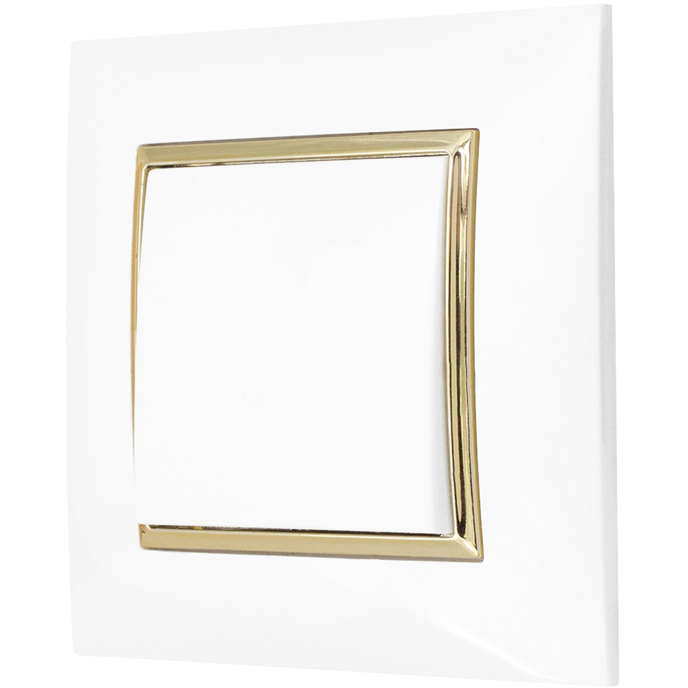 НАБОР ОДИНАРНЫХ ВЫКЛЮЧАТЕЛЕЙ ARIA БЕЛОГО ЦВЕТА С ОДНОЙ РАМКОЙ И ЗОЛОТОЙ РАМКОЙ. УСТАНАВЛИВАЕТСЯ В СТАНДАРТНЫЕ КОМБИНИРОВАННЫЕ КОРОБКИ FI60.