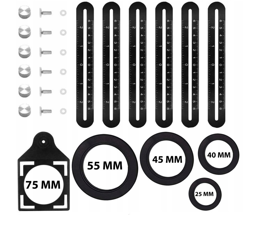 - Диаметр (шаблон): 75 мм, 55 мм, 45 мм, 40 мм, 25 мм