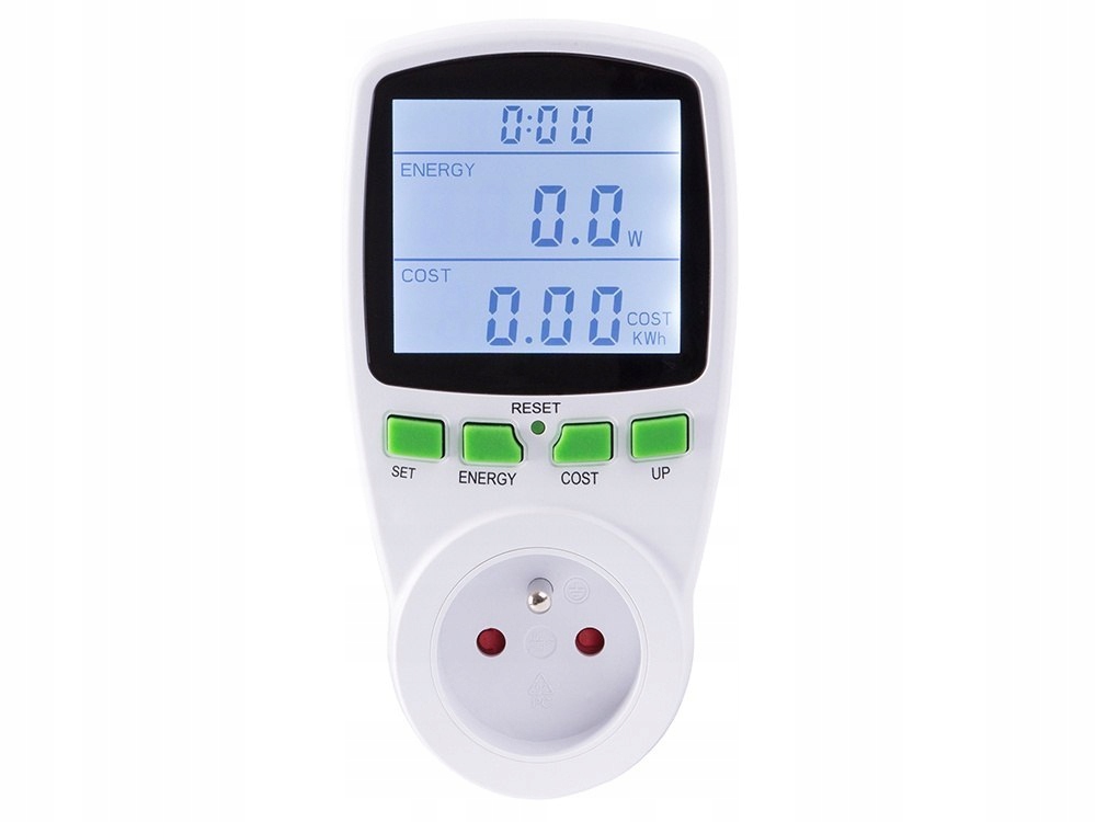 Устройство имеет большой читаемый дисплей и 4 кнопки. Измеритель энергопотребления позволяет управлять уровнем энергопотребления устройства, подключенного к нему на постоянной основе. Вы можете отобразить много параметров на экране. время измерения, напряжение тока, частота, энергопотребление и т. Д.