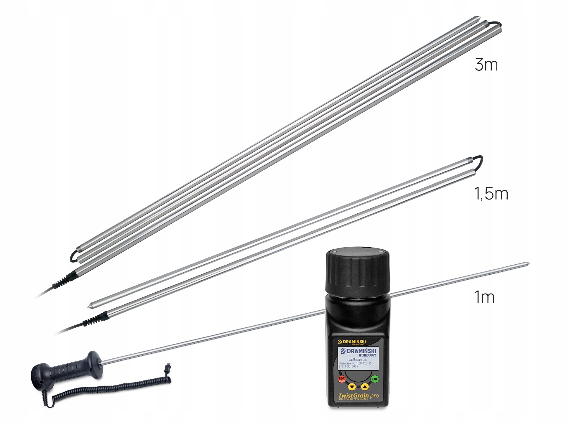 ВНИМАНИЕ!!! Каждый влагомер Dramiński Twist Grain pro можно приобрести с датчиками температуры различной длины и конструкции (из нержавеющей стали). Датчики не требуют калибровки с помощью считывателя. Сони доступны на наших аукционах Allegro.
