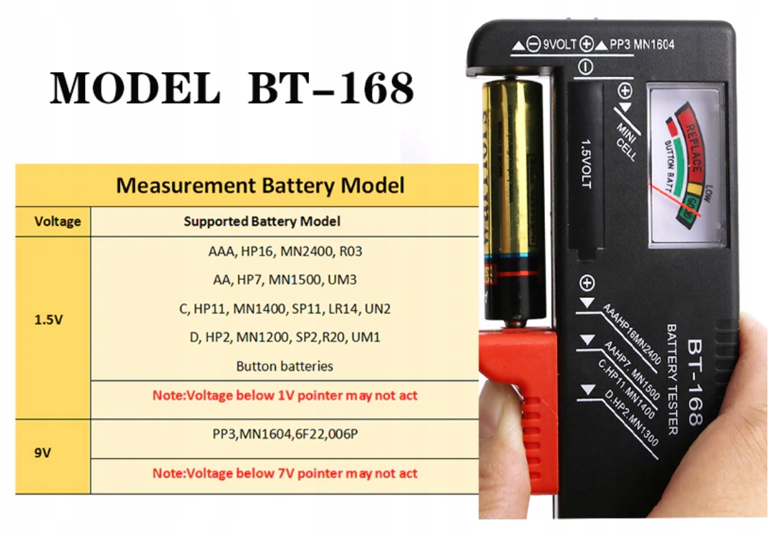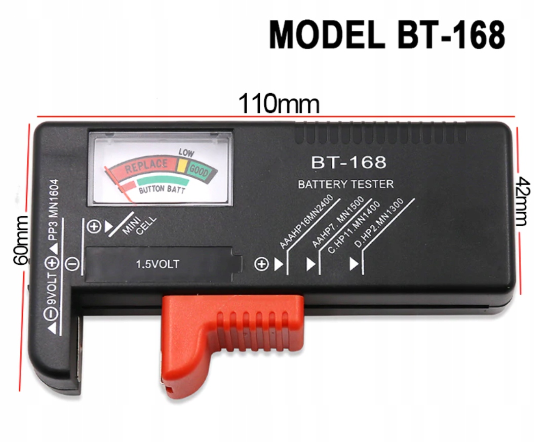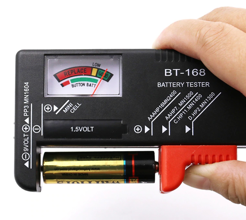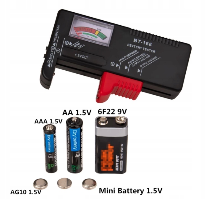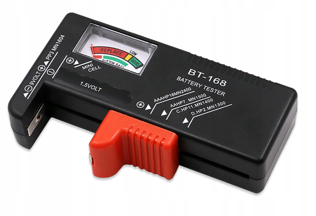 - Тестер для перезаряжаемых и щелочных батарей. Легко и быстро проверяет состояние батареи. Рекомендуется для батареек АА, ААА и 9В.