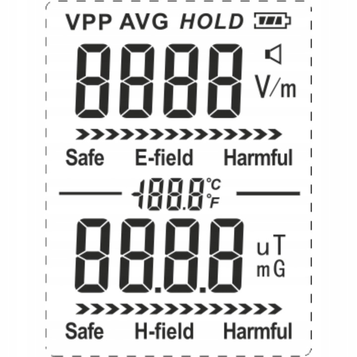 - Диапазон: 1 В/м–1999 В/м (электрическое поле)/0,01 мкТл–99,99 мкТл (магнитное поле)