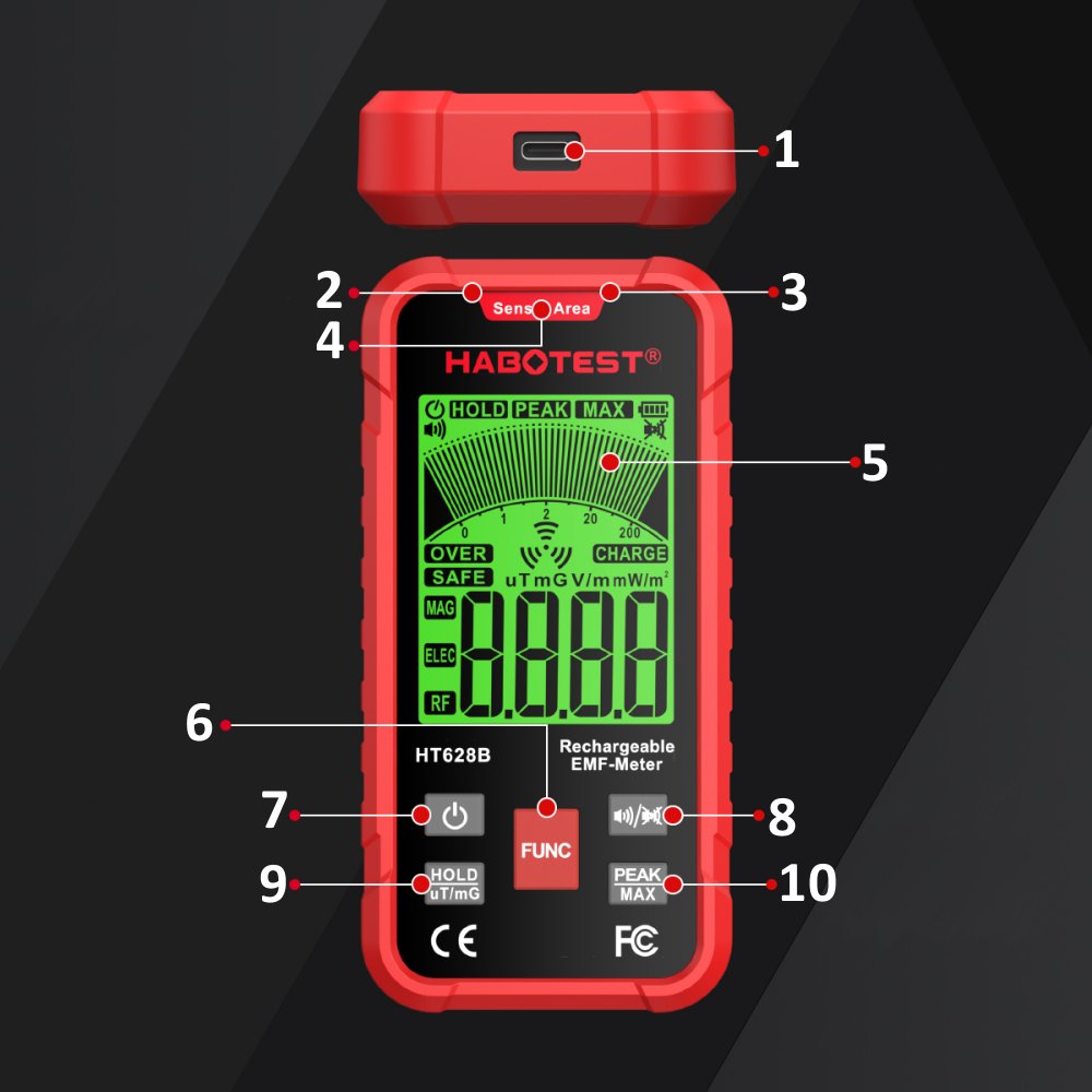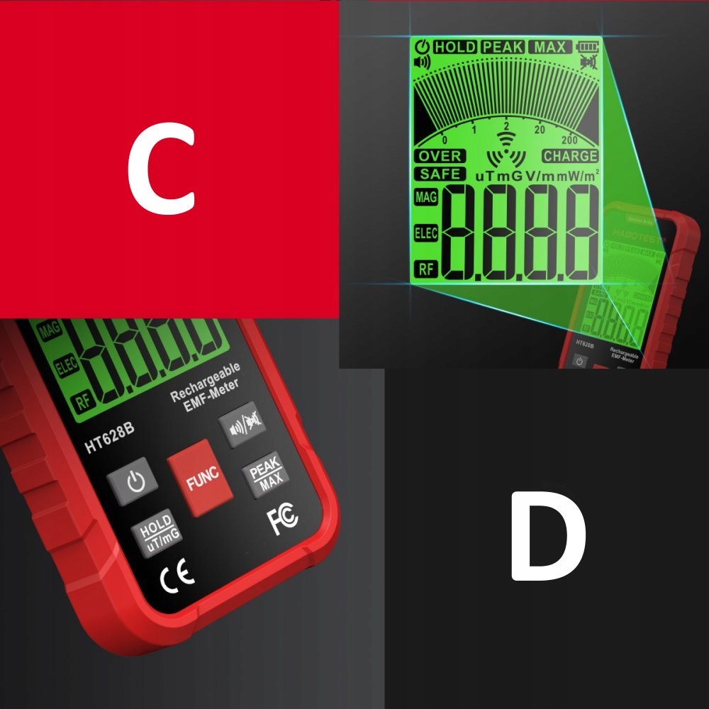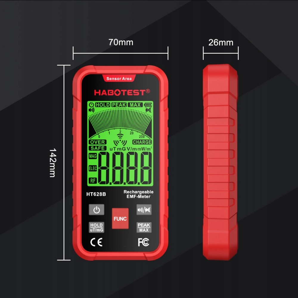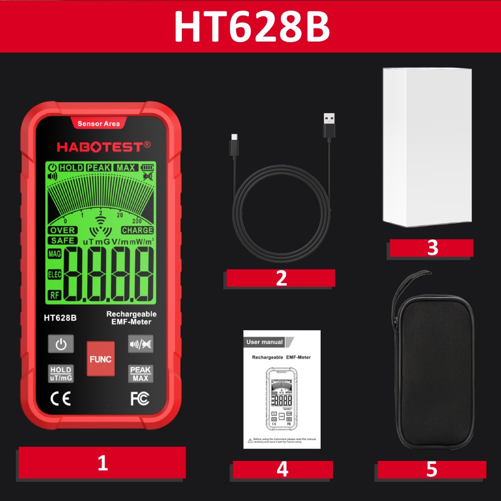 HT628B — профессиональный измеритель электромагнитного поля, предназначенный для измерения напряженности электрических и магнитных полей и радиоволн в различных средах. Измеритель прост в использовании и имеет широкий диапазон измерений, что делает его идеальным инструментом для людей, которые заботятся о своем здоровье и безопасности.