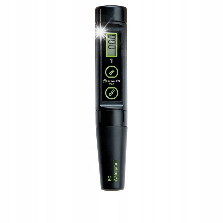 Тестер проводимости Milwaukee C66 TDS/EC – измеритель проводимости Водонепроницаемый тестер, предназначенный для всех применений. Водонепроницаемый корпус и сменный зонд делают его пригодным для тяжелых условий эксплуатации, таких как очистка сточных вод и сельское хозяйство. Модульная конструкция позволяет легко заменять датчик и батарею. - водонепроницаемость - диапазон измерения: 0,00-10,00 мСм/см - точность: ±2% - температура комп.: автоматическая - образец: MA73076 (сменный) - калибровка: ручная - температура рабочей среды: 0-50°C - источник питания: 3 x 1,5 В - срок службы батареи: около 250 часов - вес: 157 г - размеры: 254 x 67 x 47 мм - производитель: MILWAUKEE Электроды MAINTENANCEEC со временем могут накапливать питательные вещества. Чтобы свести к минимуму накопление, всегда промывайте датчик свежей водопроводной водой после каждого использования. Тестер проводимости Milwaukee PRO, как и все кондуктометры, обеспечивает измерение электрически заряженных ионов в растворе и является абсолютной мерой проводимости. В гидропонике EC часто преобразуют в TDS в частях на миллион (ppm).