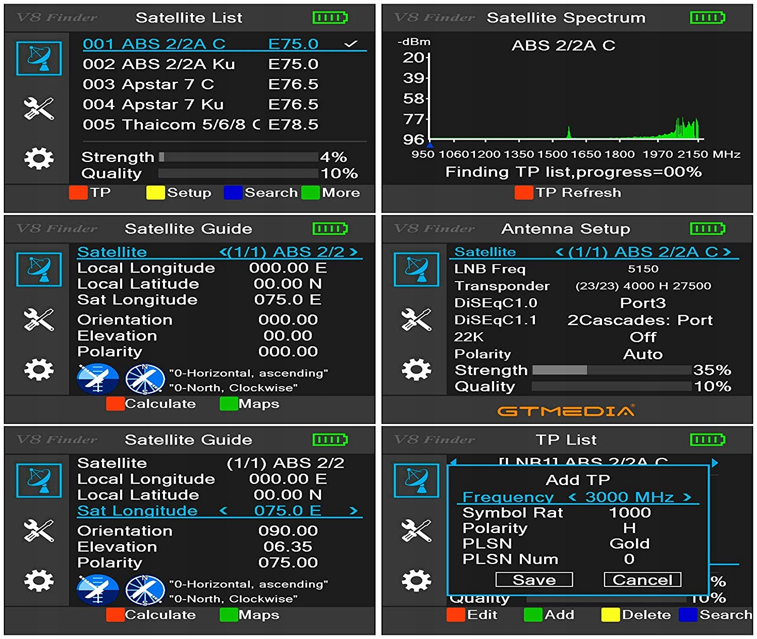 Измеритель Freesat V8 используется для измерения DVB-S/S2/S2X, H.265 спутниковый сигнал. Он имеет встроенный цветной ЖК-дисплей диагональю 3,5 дюйма (8,9 см), что облегчает работу в условиях низкой освещенности и позволяет просматривать каналы. без кода.