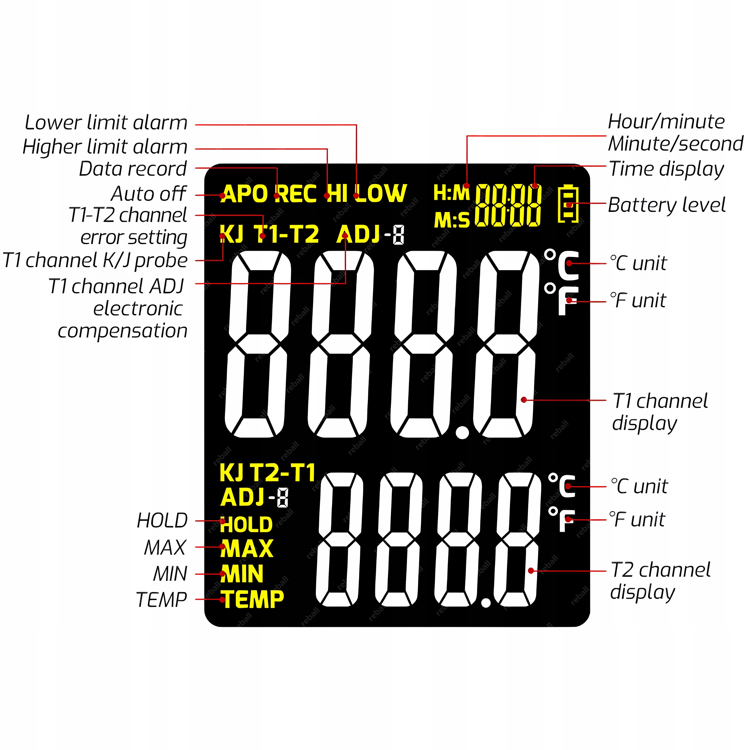 TA612B — это точный профессиональный измеритель температуры, поддерживающий два датчика типа К (Т1 и Т2). Он идеально подходит как для сервисного обслуживания, так и для мастерских и лабораторий. Он позволяет одновременно измерять температуру из двух источников, а также сохранять и анализировать результаты в режиме реального времени.