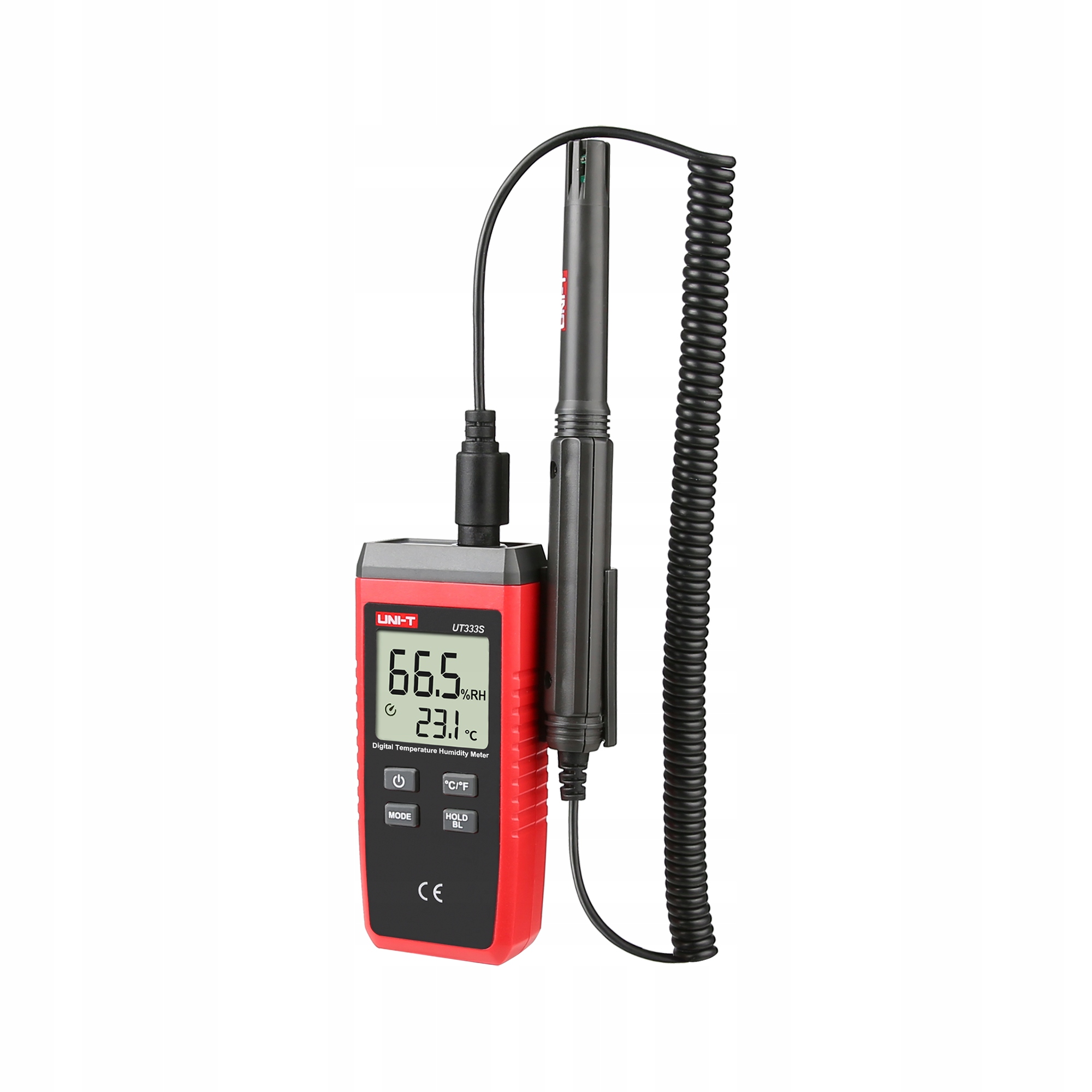 <р> Температура <р> • Диапазон измерения: -10°C ~ 60°C; 14–140 °F <р> • Точность измерения: ±1,0°С; ±2,0 °F <р> • Разрешение: 0,1°C; 0,2 °F <р> Влажность <р> • Диапазон измерения: 0–100,0 % относительной влажности <р> • Точность измерения: ±5 % (20–80 % относительной влажности) <р> • Разрешение: 0,1 % относительной влажности <р> ДОПОЛНИТЕЛЬНЫЕ ФУНКЦИИ <р> Выбор единицы измерения температуры: °C / °F <р> Зафиксировать последнюю индикацию <р> Автоматическое выключение <р> Режимы МАКС/МИН <р> Подсветка экрана <р> Уведомление о перезагрузке <р> ОБЩИЕ ХАРАКТЕРИСТИКИ <р> Частота выборки: 1/с <р> Питание: 3 батарейки по 1,5 В (R03) <р> ЖК-дисплей: 32 x 35 мм <р> Вес: 310 г <р> Размеры: 110 х 53 х 26 мм <р> Аксессуары: БатарейкиИзмеритель температуры и влажности Uni-T UT333S