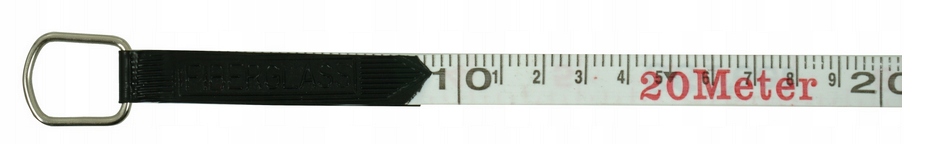 Лента из стекловолокна длиной 20 м и шириной 12 мм. С одной стороны метрическая шкала, с другой дюймовая. Лента заканчивается металлической петелькой, помещенной в пластиковую кассету, оснащенную заводной рукояткой. Цвет ленты белый. Для выполнения измерений в диапазоне до 20 м
