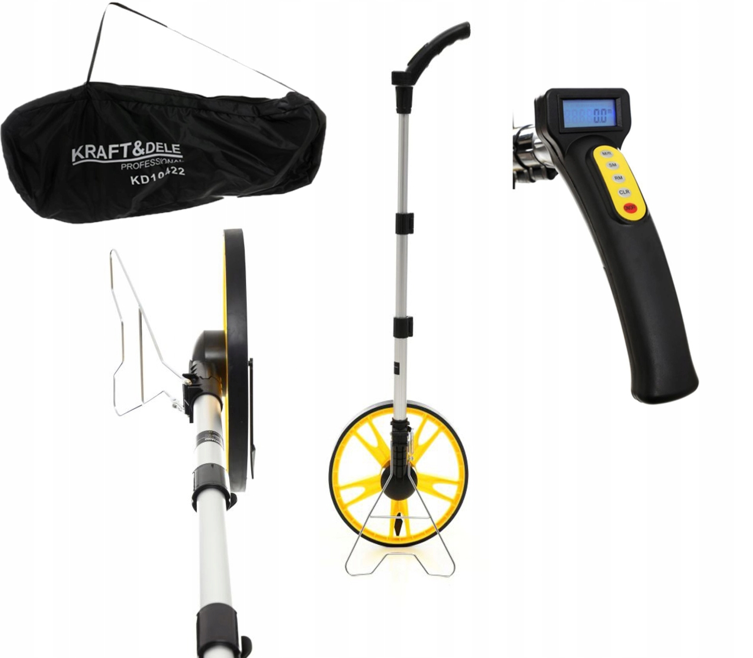 Измерительное колесо оснащено электронной системой измерения расстояния. Измерение производится путем катания колеса по ровной поверхности, при этом включается и активируется электронный счетчик. Результат измерения отображается в виде цифр на ЖК-дисплее. Металлическая ножка позволяет разместить устройство в вертикальном положении. Это устройство широко используется при полевых измерениях, на дорогах, в строительстве, домах и садах, на дорожных покрытиях общего пользования, спортивных площадках, при установке опор электропередач, при посадке деревьев и т. д.