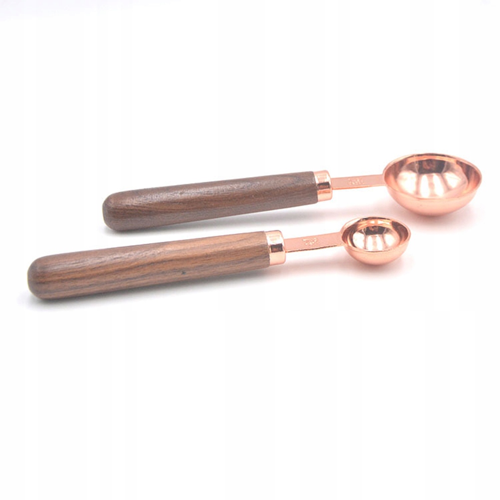 Измерение ложки нержавеющей стали с помощью ореховой ручки (розовое золото)
