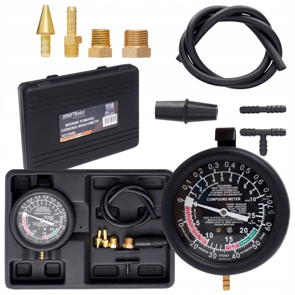 Универсальное устройство для измерения давления и вакуума модели Kraft & Dele Model KD10589 Идеально полезна при диагностике автомобильных и мотоциклетных двигателей. Оснащен разъемами и расширениями, которые помогают монтажности счетчика. /b>