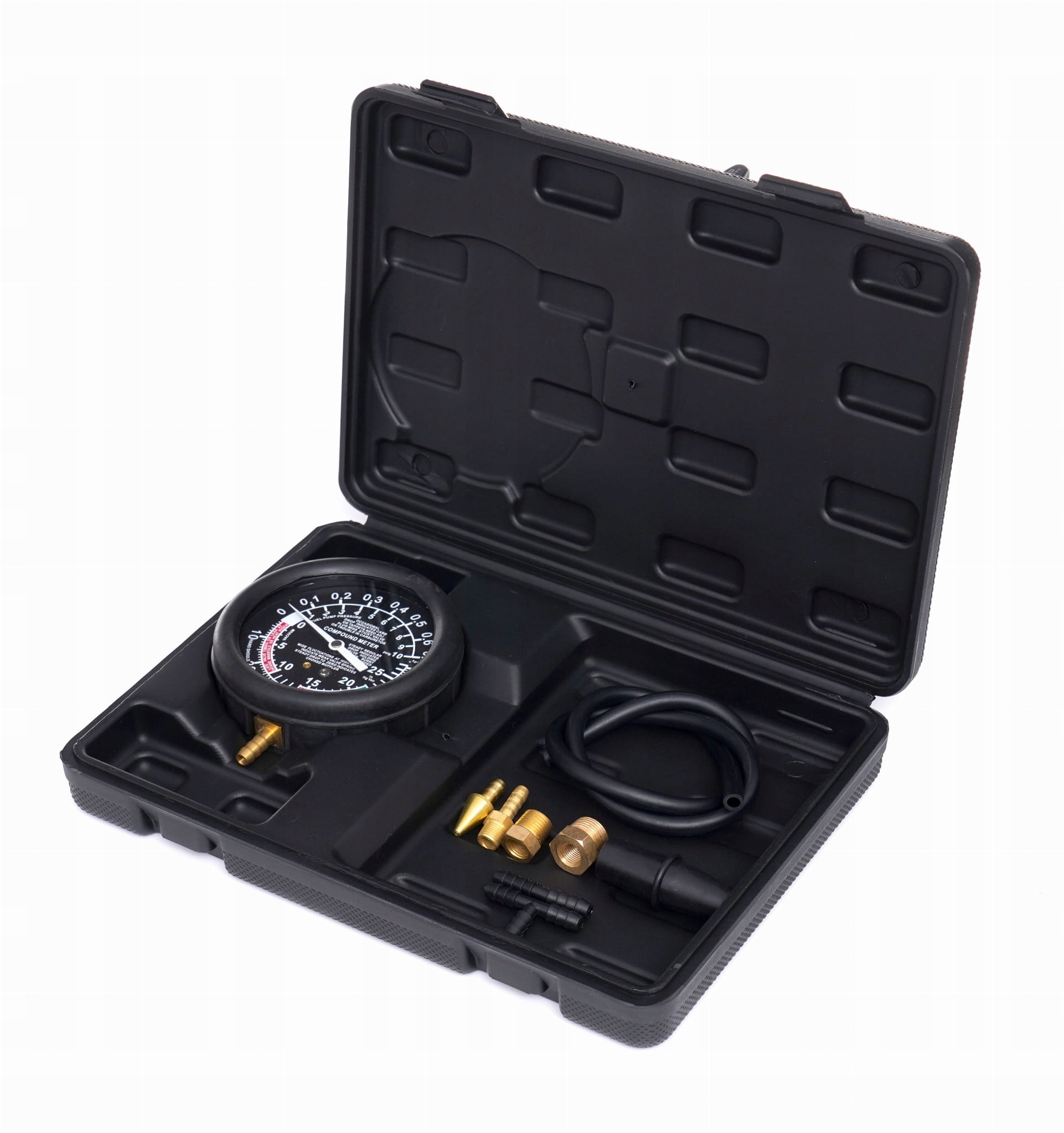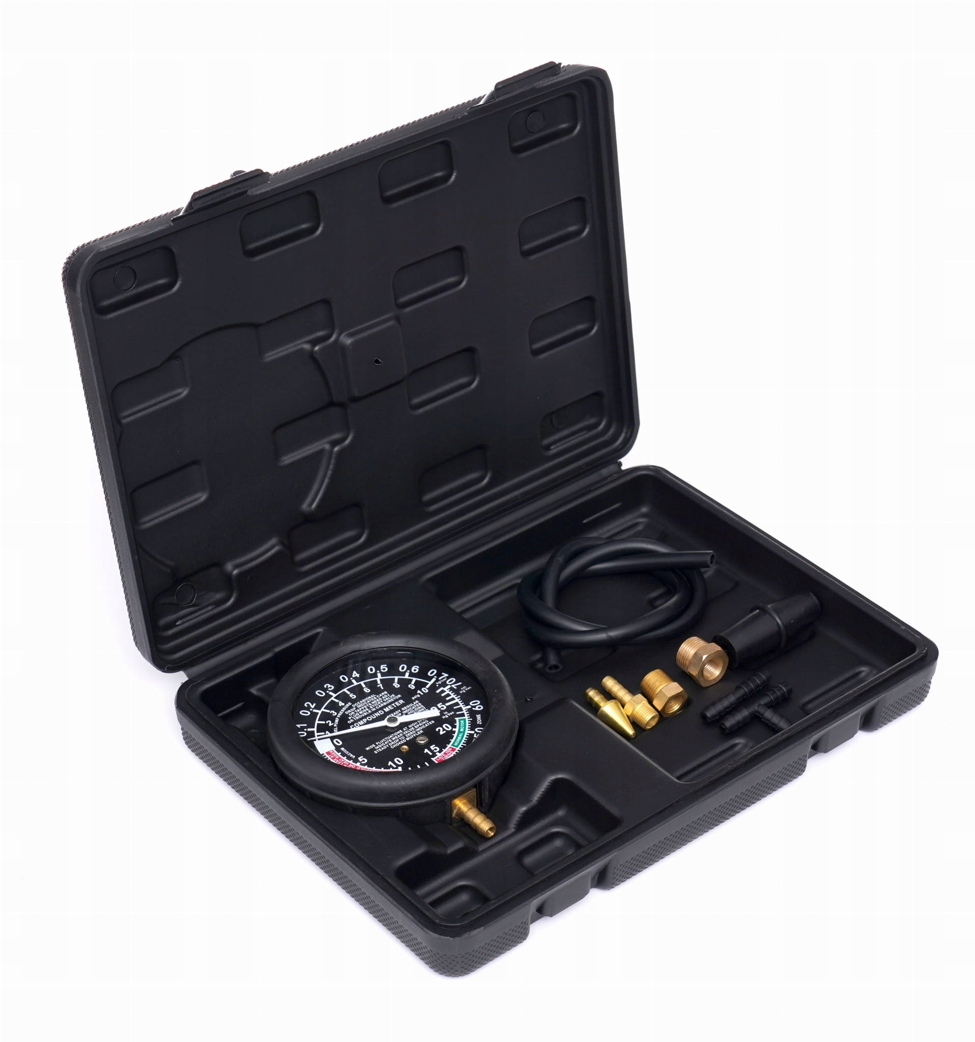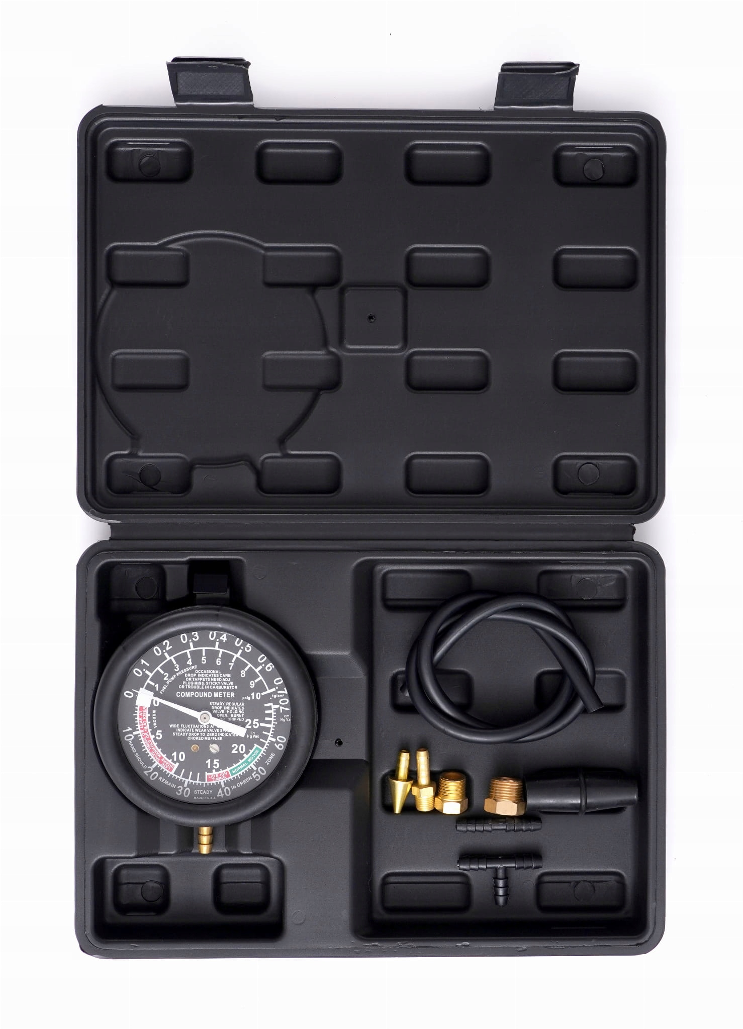 Универсальное устройство для измерения давления и вакуума модели Kraft & Dele Model KD10589 Идеально полезна в диагностике автомобильных и мотоциклетных двигателей. Оснащен разъемами и расширениями, которые полезны для монтажа счетчика.