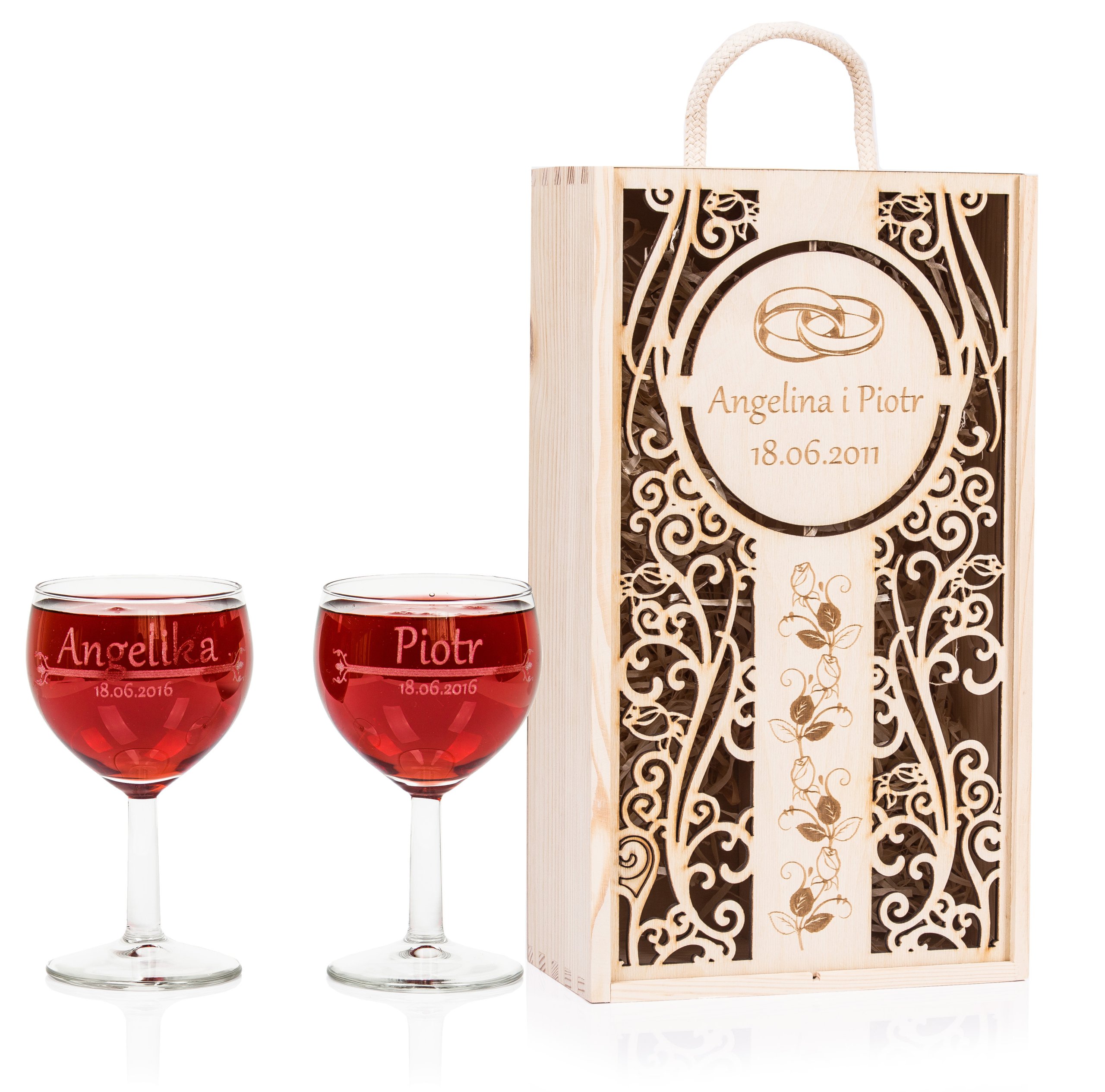 ВИННАЯ КОРОБКА + БОКАЛА ЮБИЛЕЙНАЯ СВАДЕБНАЯ ГРАВИРОВКА
