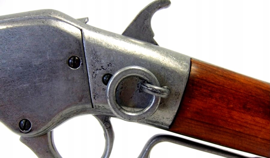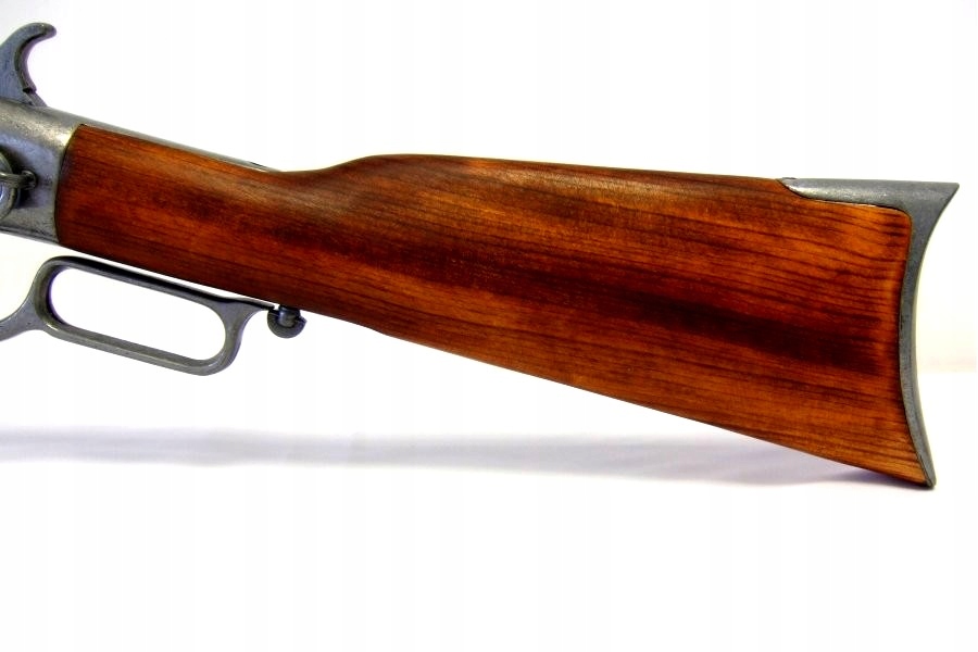 Это, безусловно, самый известный О.Ф. Винчестер. Производившийся в различных длинах и других способностях журнала, даже по заказу, он приобрел огромную популярность среди охотников, ковбоев и поселенцев. Он идеально подходил для борьбы и охоты на средних животных. Реплика изготовлена из стали. Он имеет эффективный механизм рычага, так что вы можете сделать так называемый сухой выстрел. Подвижный перекрестный перекресток был помещен на ствол, регулируемый по вертикали и с помощью латунного зажима горизонтально. Кровать и колба сделаны из деревянных окрашенных. Реплика имеет работающий замок рычага - вращающийся основной продукт после того, как повернуть 90 'эффективно блокирует руку. Винчестер в этой модели не имеет крышки замка, боковые стены замка и крана были сделаны без украшений, благодаря которой реплика приобретает серьезность и реалистичный вид.