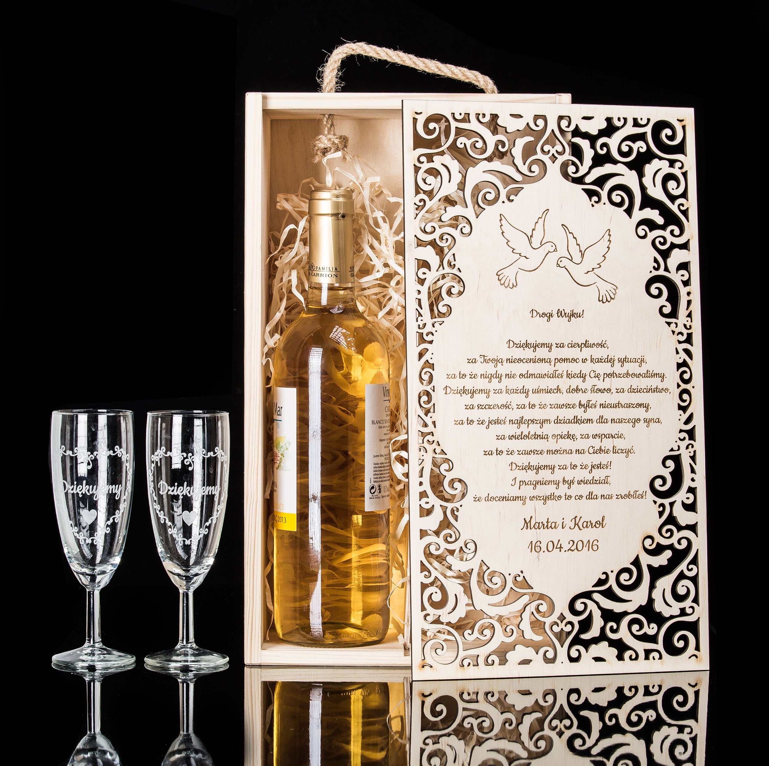 Wine Box Openwork + бокалы с гравировкой