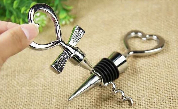 - стильные пробка и штопор в форме сердца.