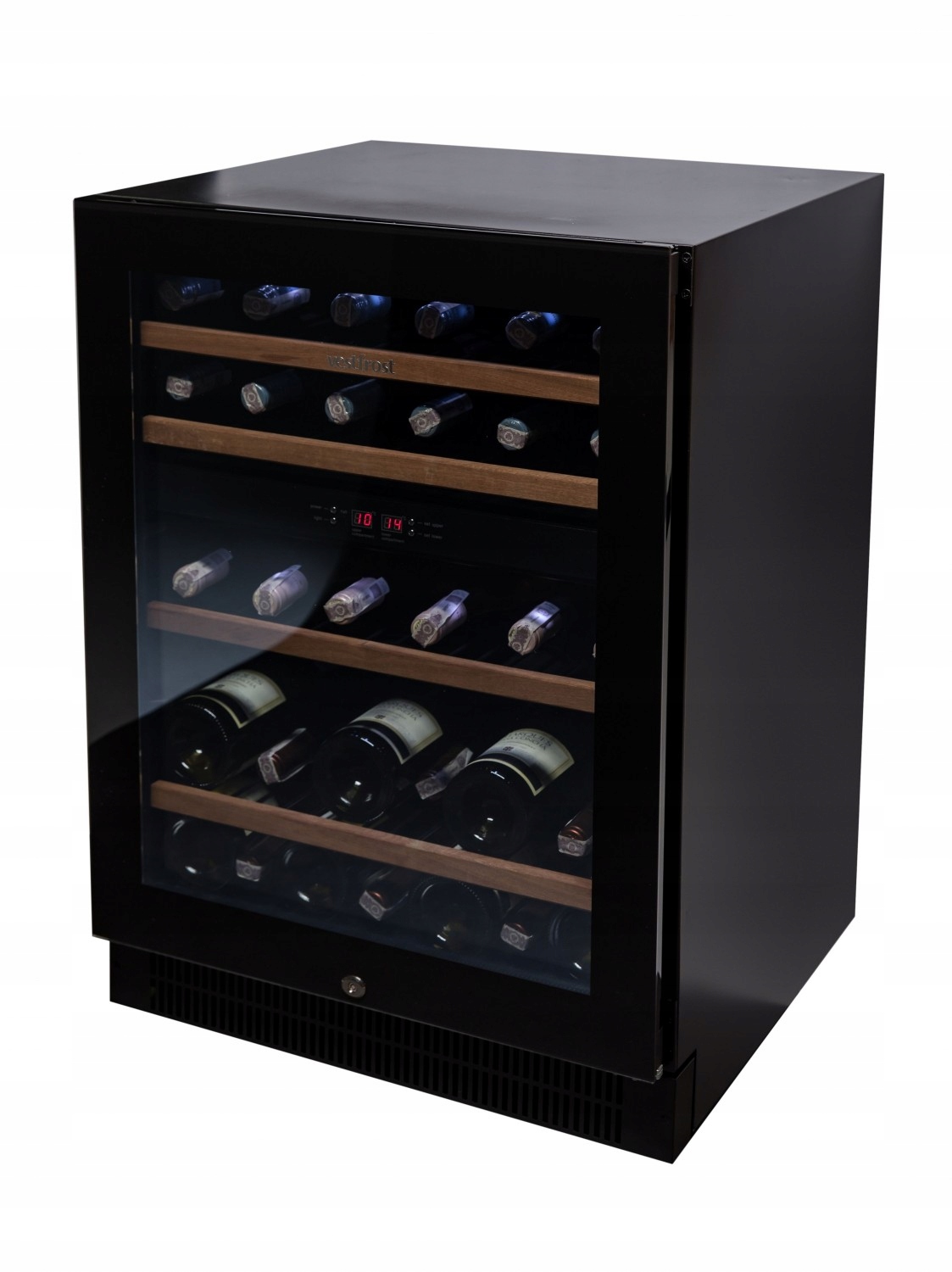 Отдельно стоящий винный холодильник на 44 бутылки, класс энергоэффективности G. Электронное управление, внутреннее светодиодное освещение.