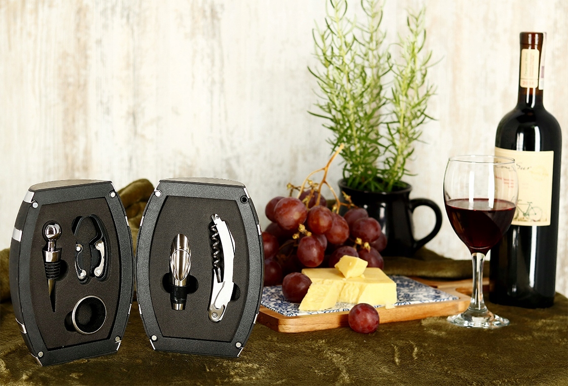 ВИННИЙ НАБІР 5 ЕЛЕМЕНТІВ В БОЧЦІ, ШТОПОР