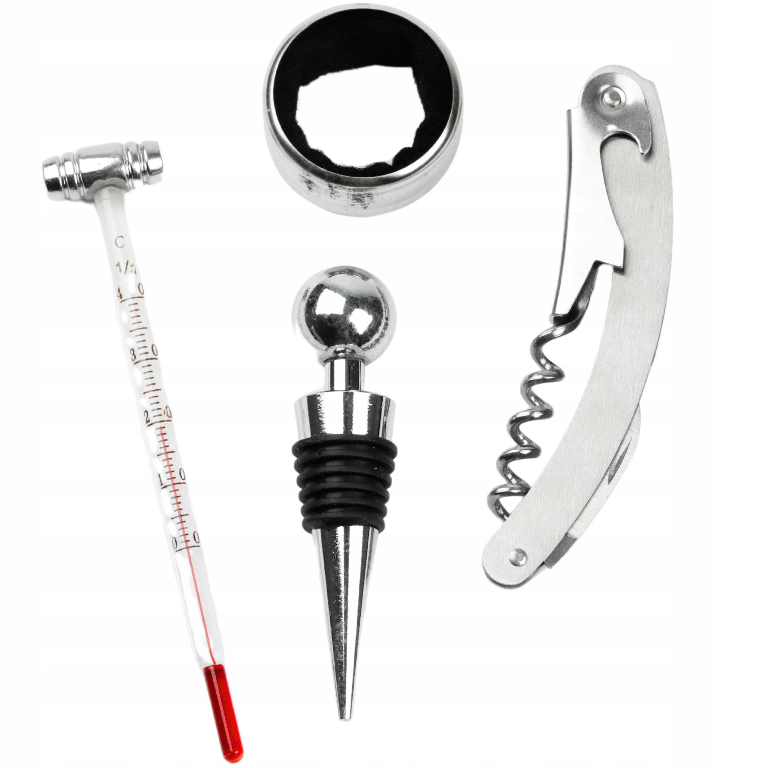 - Содержимое: 1 штопор, 1х кольцо для бутылки, 1х термометр для вина, 1х пробка для бутылки