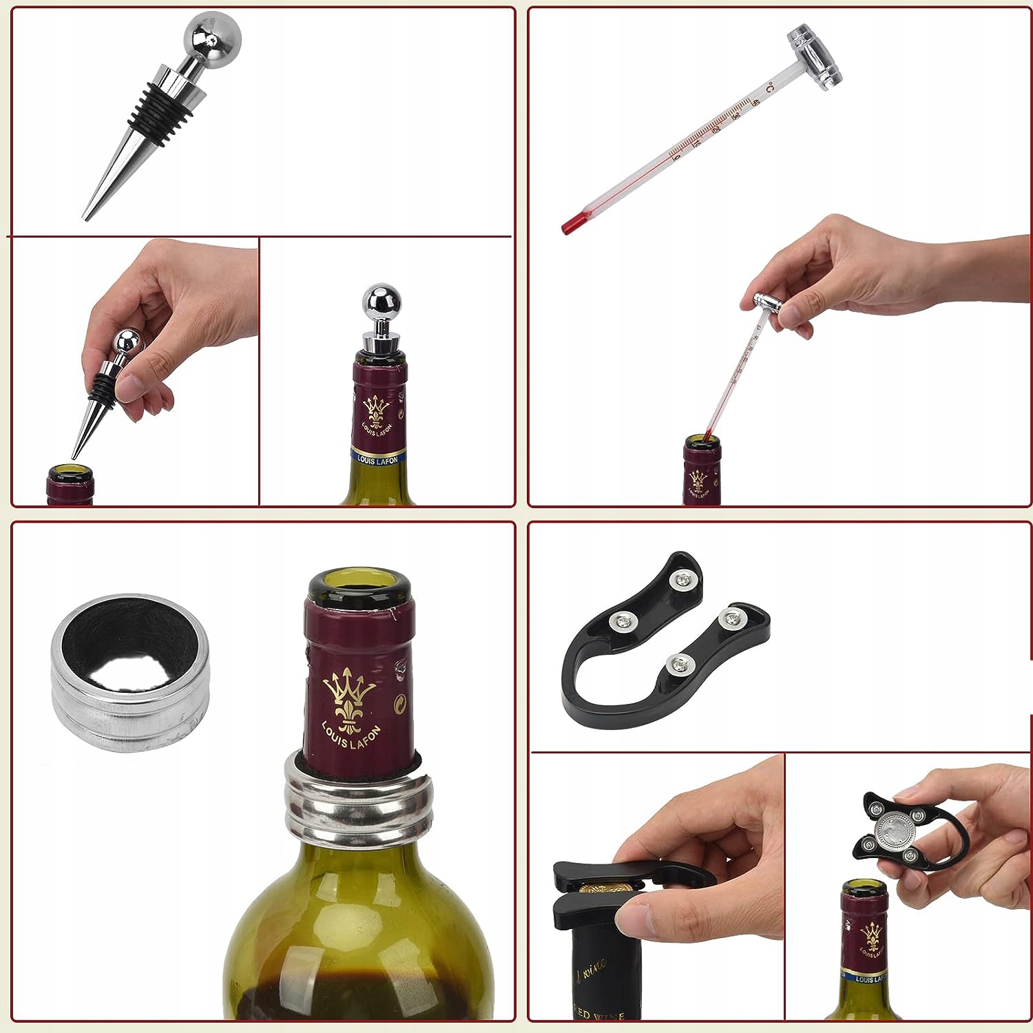 Самое высокое качество: - Наш набор открытия бутылок для вина состоит из лучшего сплава цинка и нержавеющей стали, который не легко поврежден, долговечен и устойчив к грязи. Это высококачественный, высококачественный продукт, который идеально подходит как для натуральных, так и для синтетических пробных заскопа. Мы можем использовать их в качестве удобного инструмента достаточно долго.