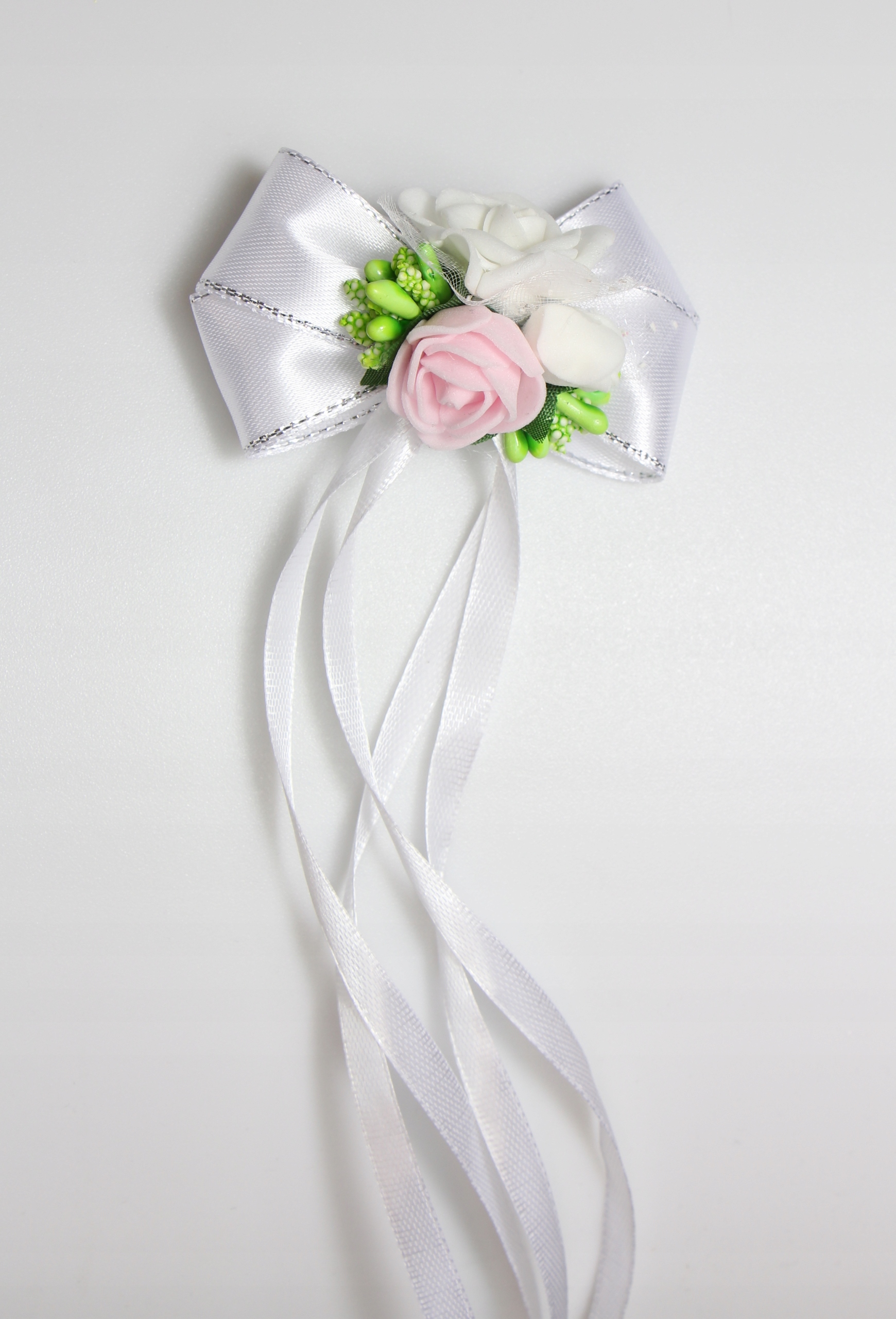 - Съемный бант с бусинами и лентами, можно носить как с, так и без