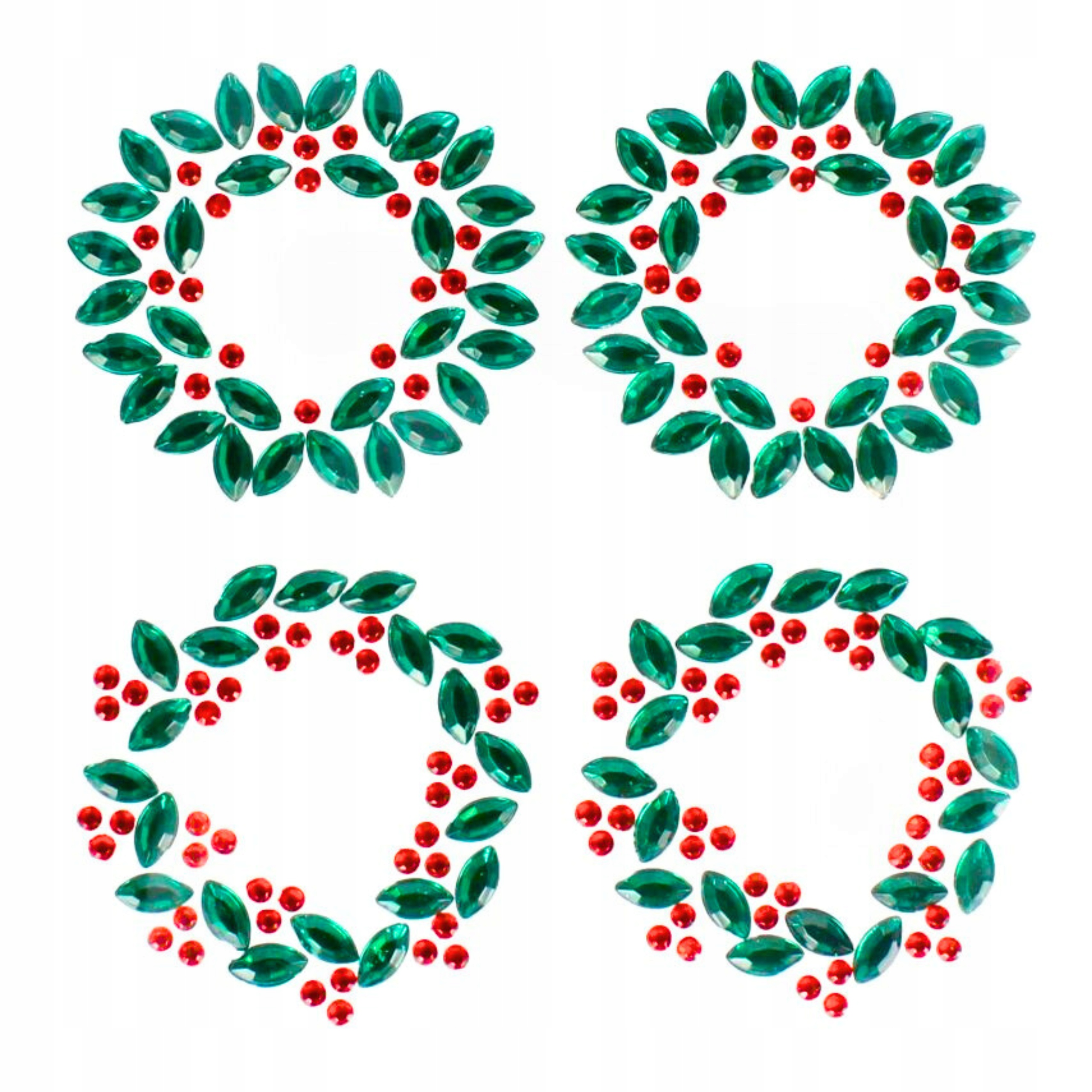 ХРУСТАЛЬНЫЕ РОЖДЕСТВЕНСКИЕ ВЕНКИ ДЕКОРАТИВНЫЕ САМОКЛЕЯЩИЕСЯ, 3,5см, 4 ШТ