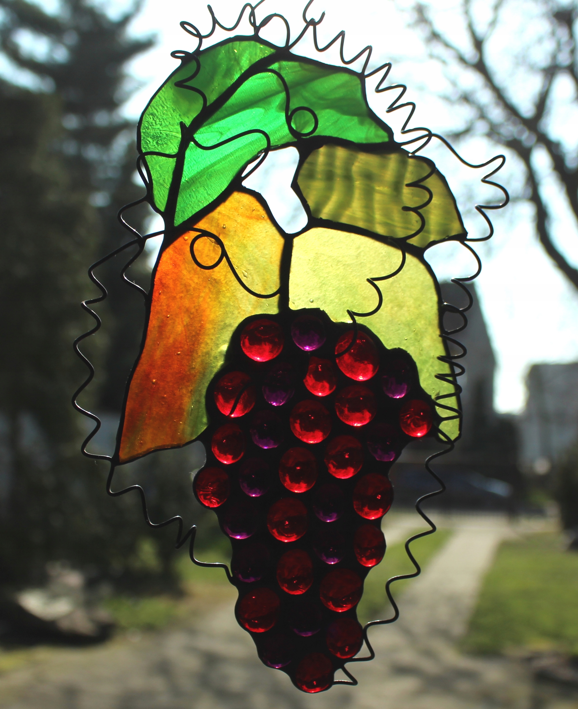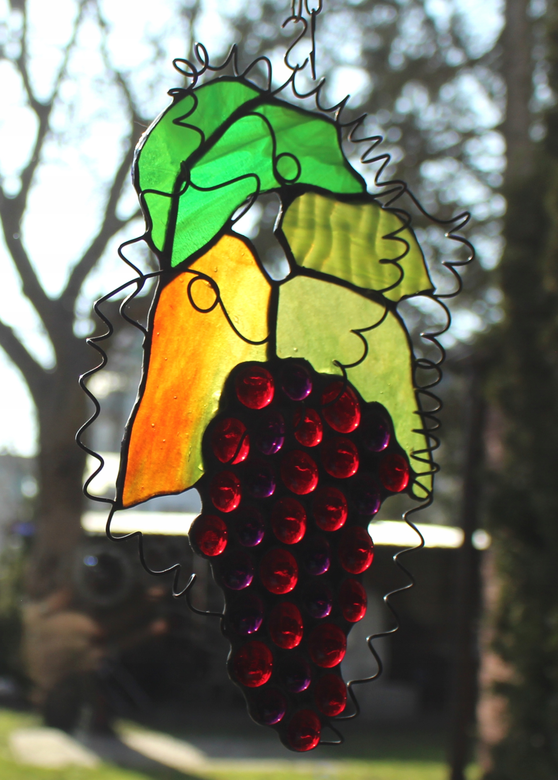 Виноградний вітраж, виноград, осіннє оформлення вікон, червоне вино
