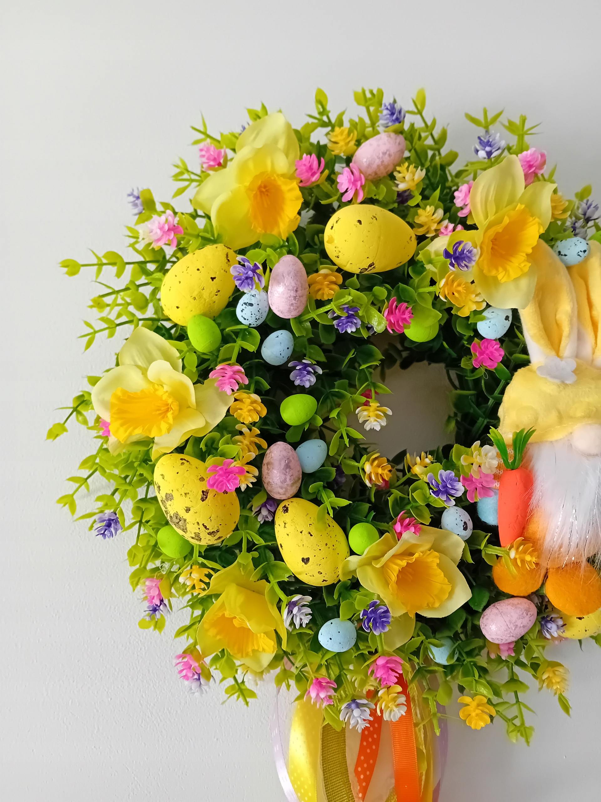 Венок для двери Пасхальный гламурный силиконовый высококачественный гноме 35 см
