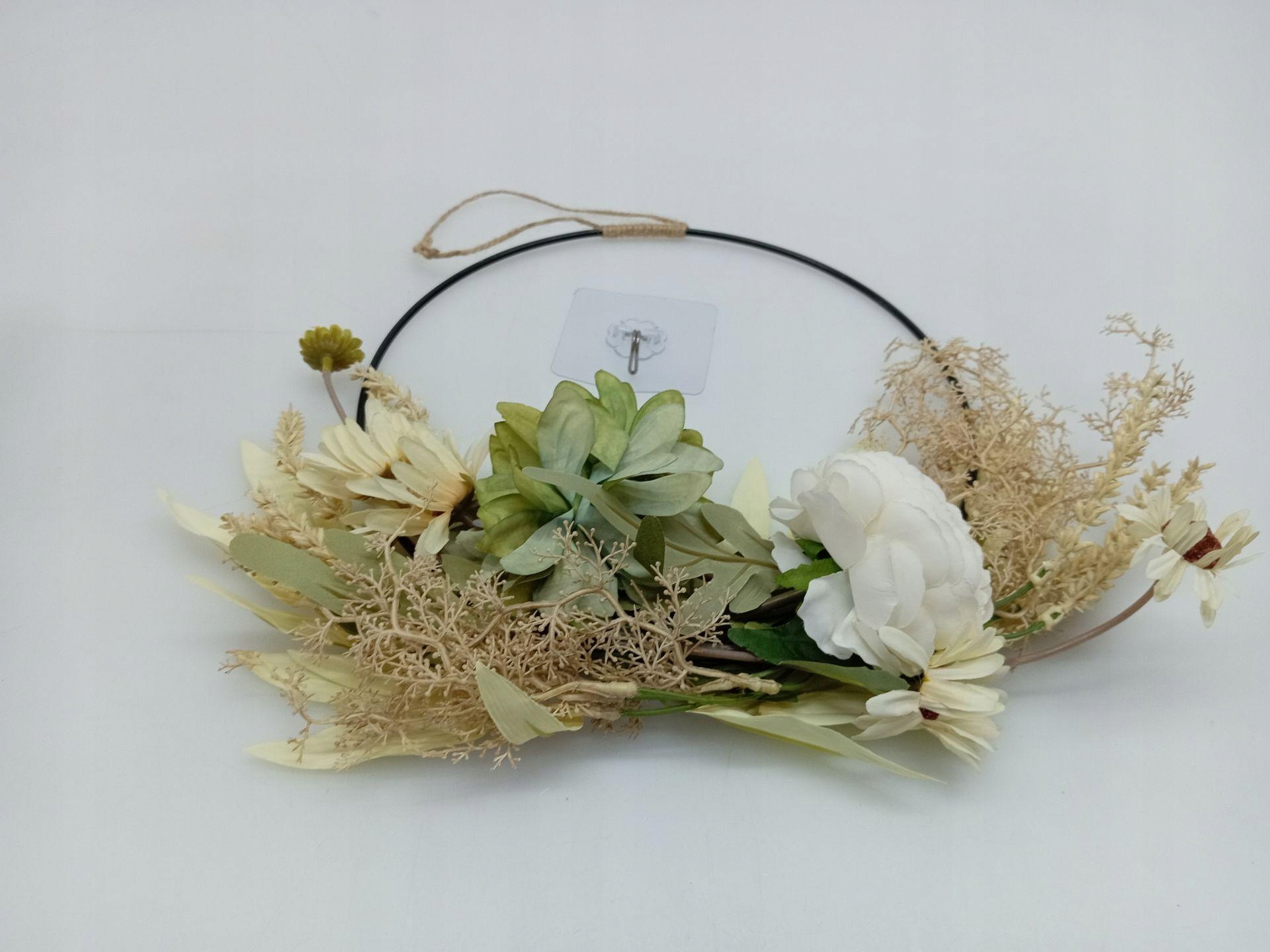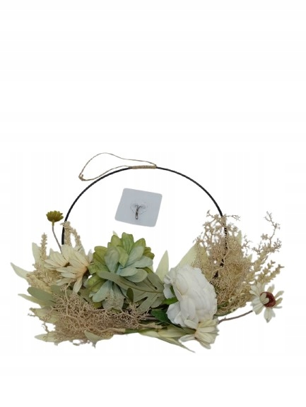 Венок из искусственных цветов: этот красочный весенний венок богат расстоянием, белыми цветами, сухой травой и листьями на проволочном железном кольце. Благодаря этому венок из искусственных цветов выглядит очень реалистично и красочно.