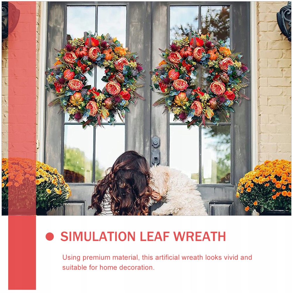 Этот искусственный венок, изготовленный из высококачественного материала, выглядит ярко и подходит для украшения дома.