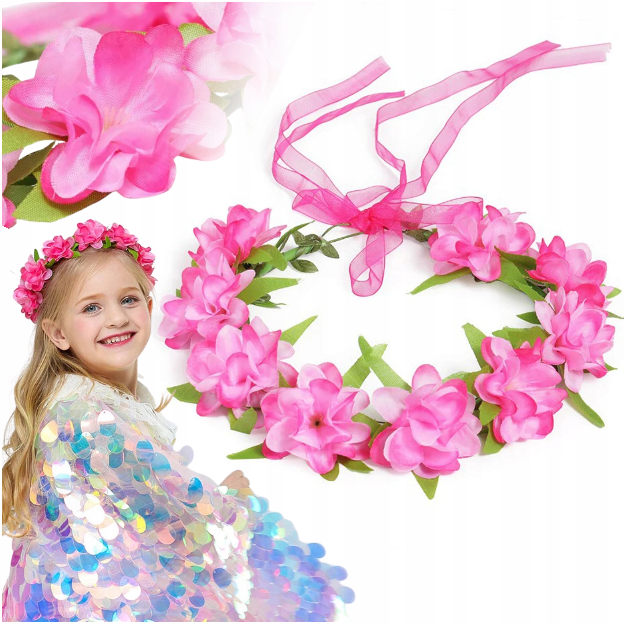 Венок -идеальное украшение b> для каждой девушки, которая хочет чувствовать себя особенной. Благодаря Pink Flowers и ленту венок идеально вписывается в стиль русалок, феев или сказочных персонажей.