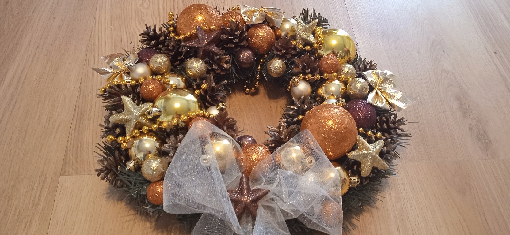 Подходит в качестве украшения стола (внутри можно разместить свечи) или как венок, который можно повесить на дверь.