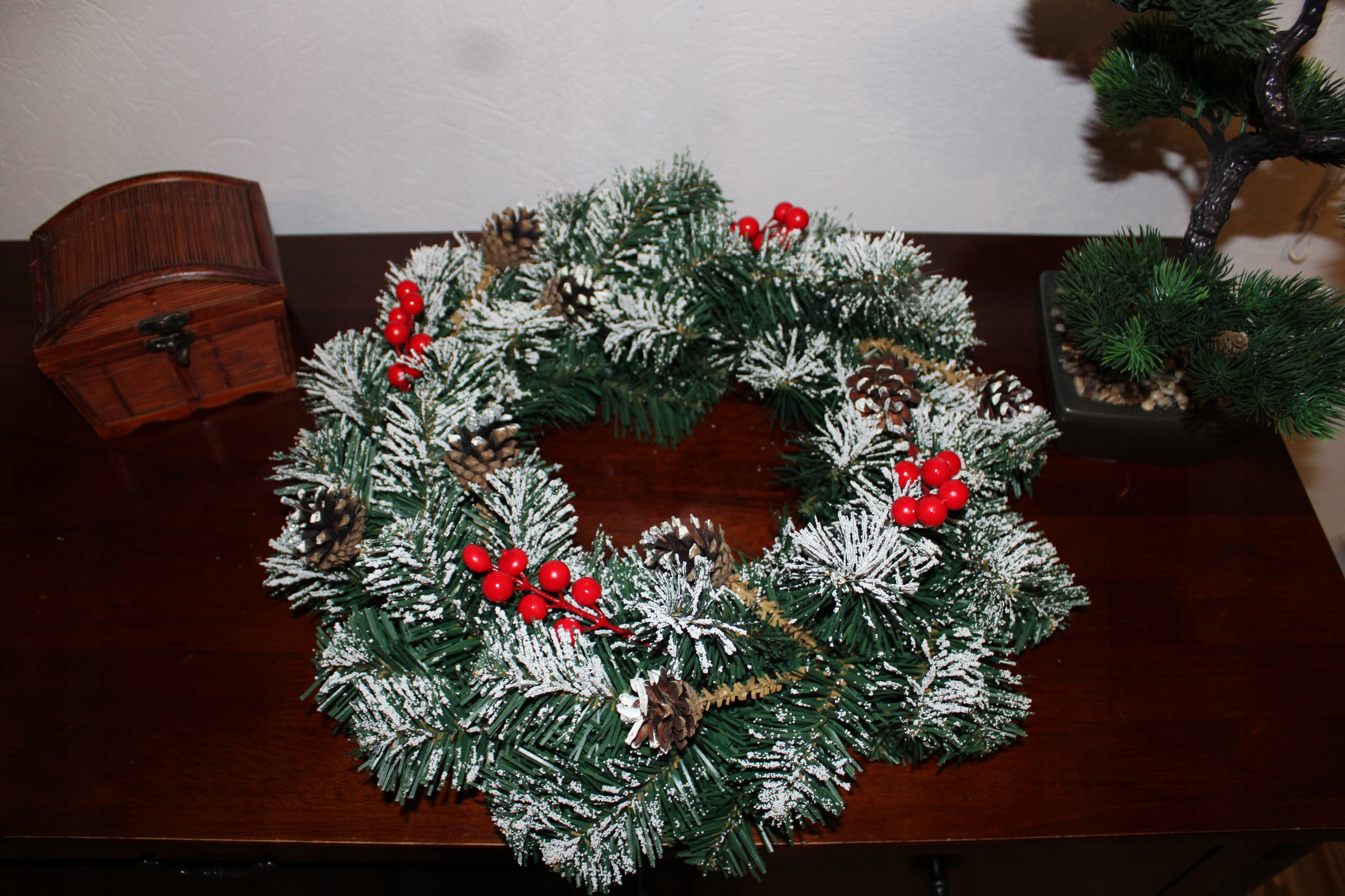 Предмет продажи - заснеженный венок диаметром около 45 см.