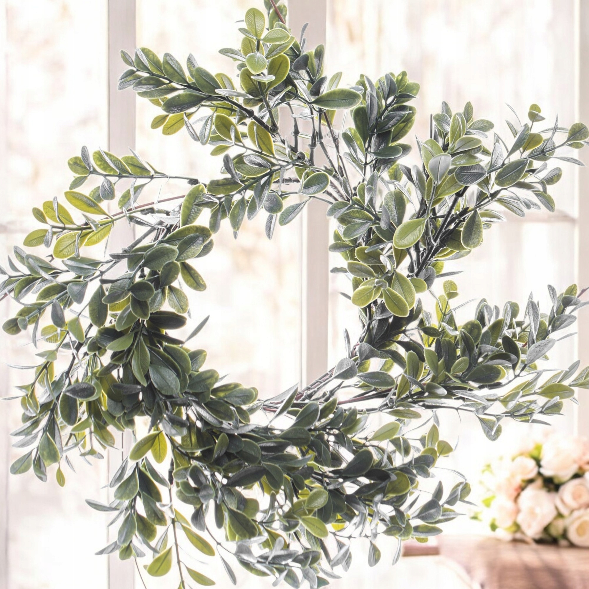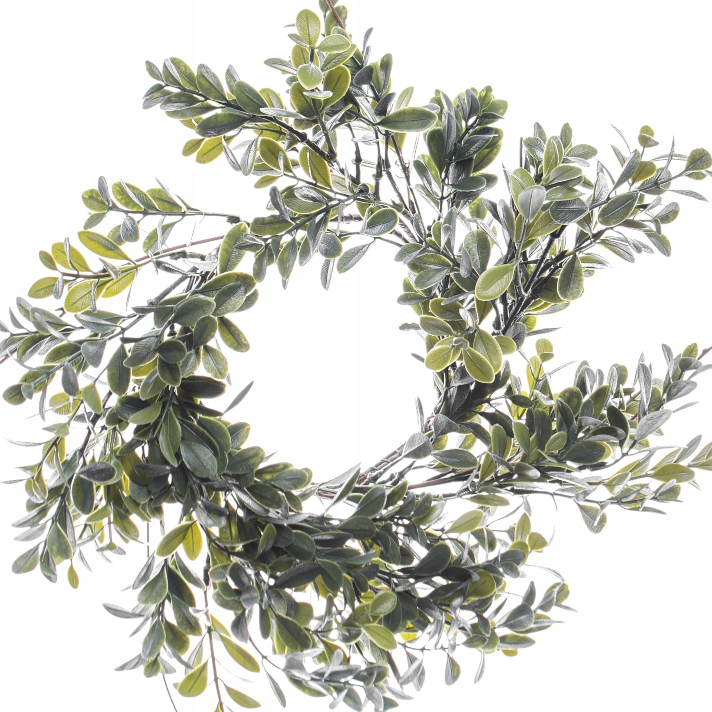 Красивый декоративный венок, идеально подходящий для пасхальных композиций и независимого внутреннего украшения. Изготовлен из пластика, в естественных оттенках зеленого. Прекрасно воспроизводит внешний вид природных растений и в то же время обеспечивает долговечность и простоту ухода.