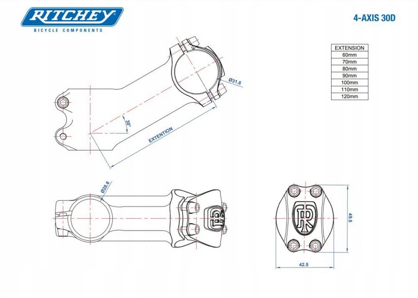 Винос RITCHEY COMP 4-AXIS 30°D 90 мм 1 1/8" 31,8 мм