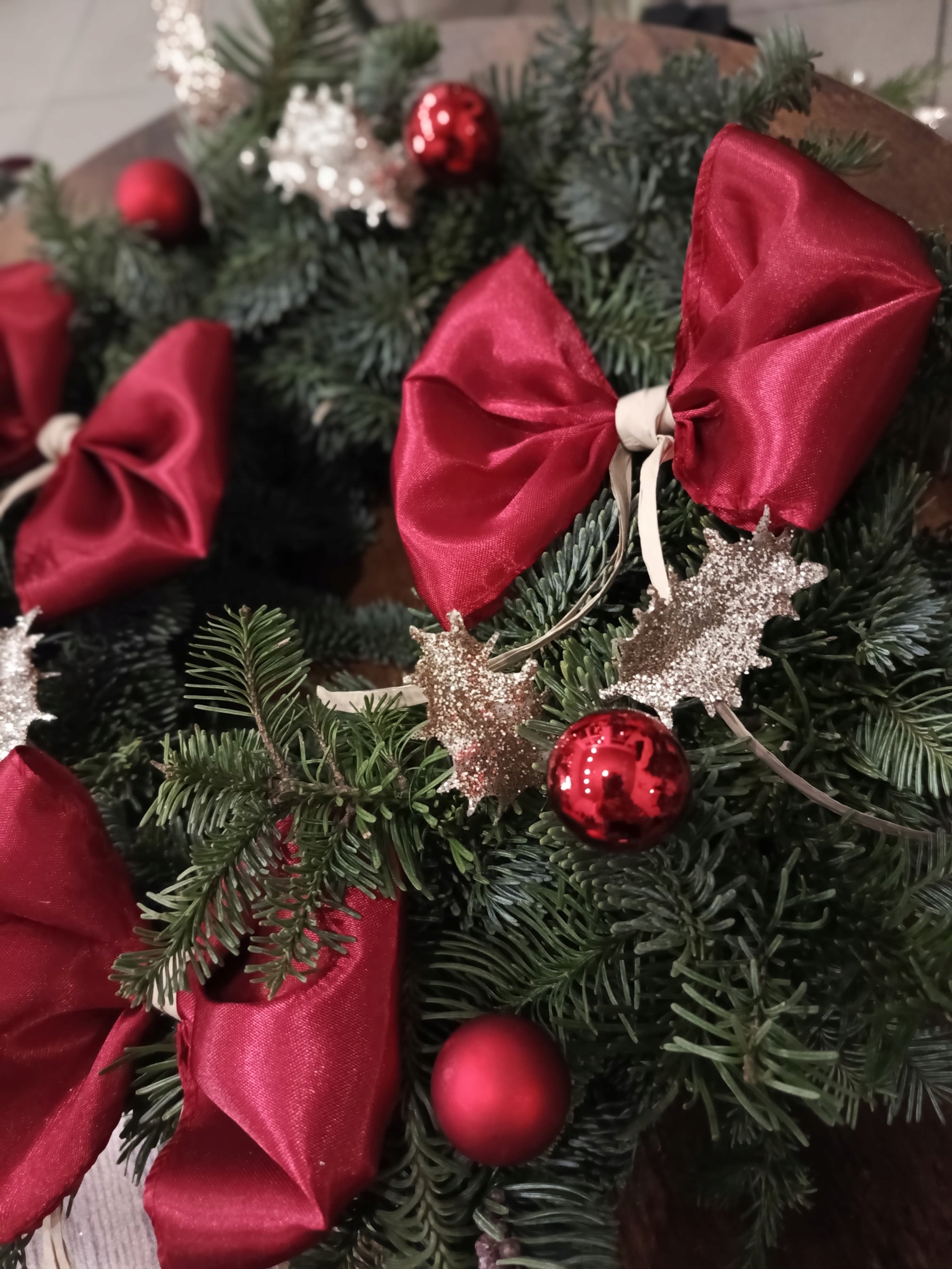 - Композиция была сделана на фонде , состоящего из ветвей fir nobilis и многочисленные искусственные и текущие добавки >