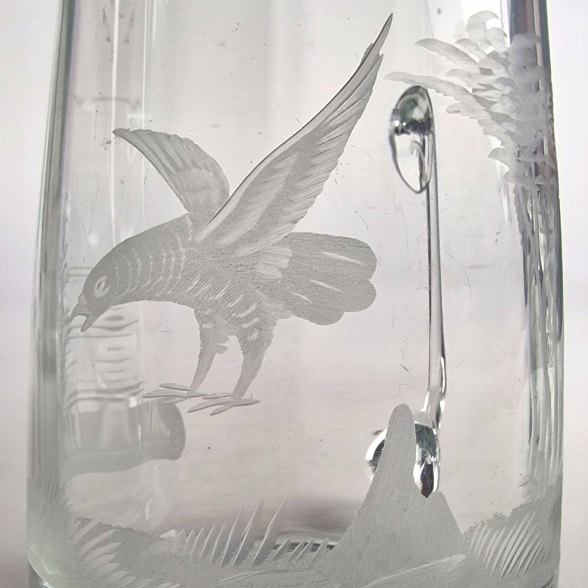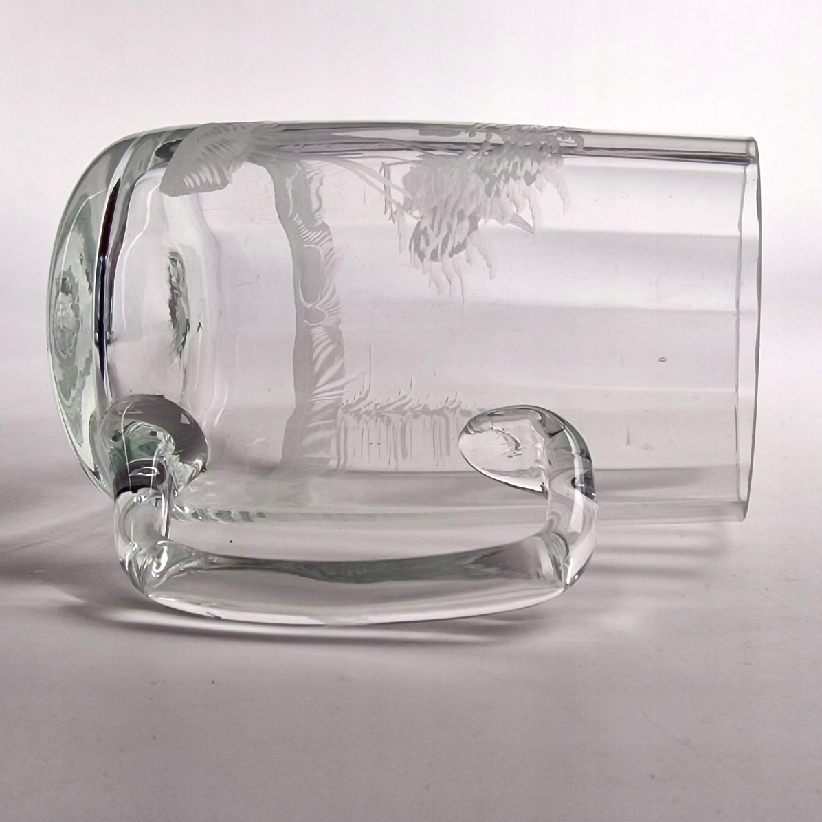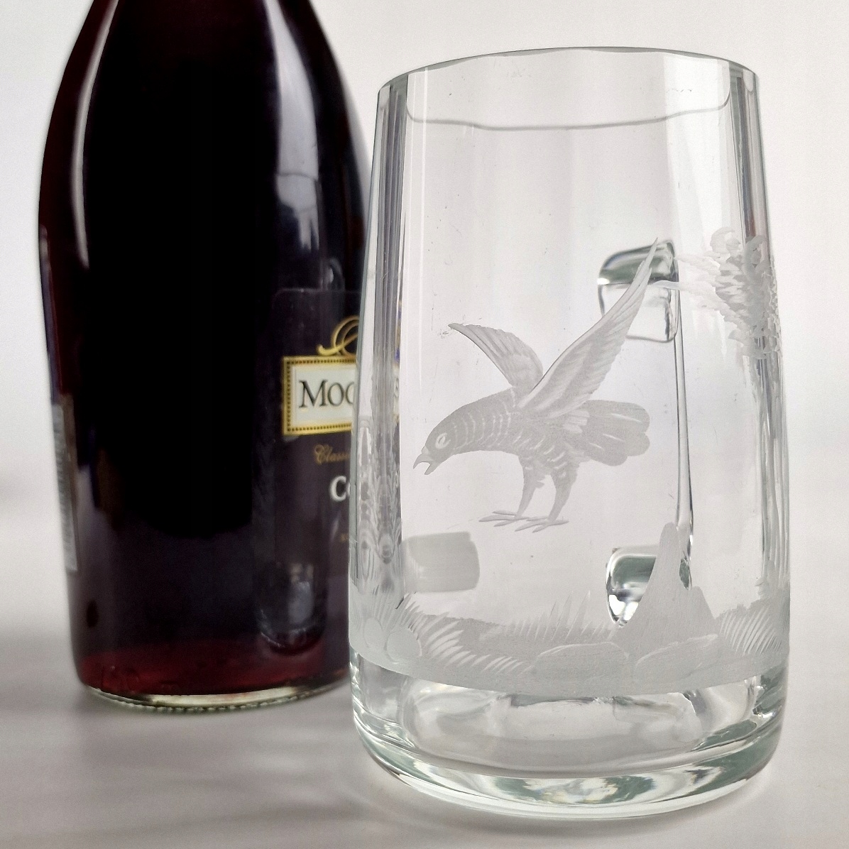VINTAGE SZKLANY KUFEL Z GRAWEREM SZLIFEM / PTAKA
