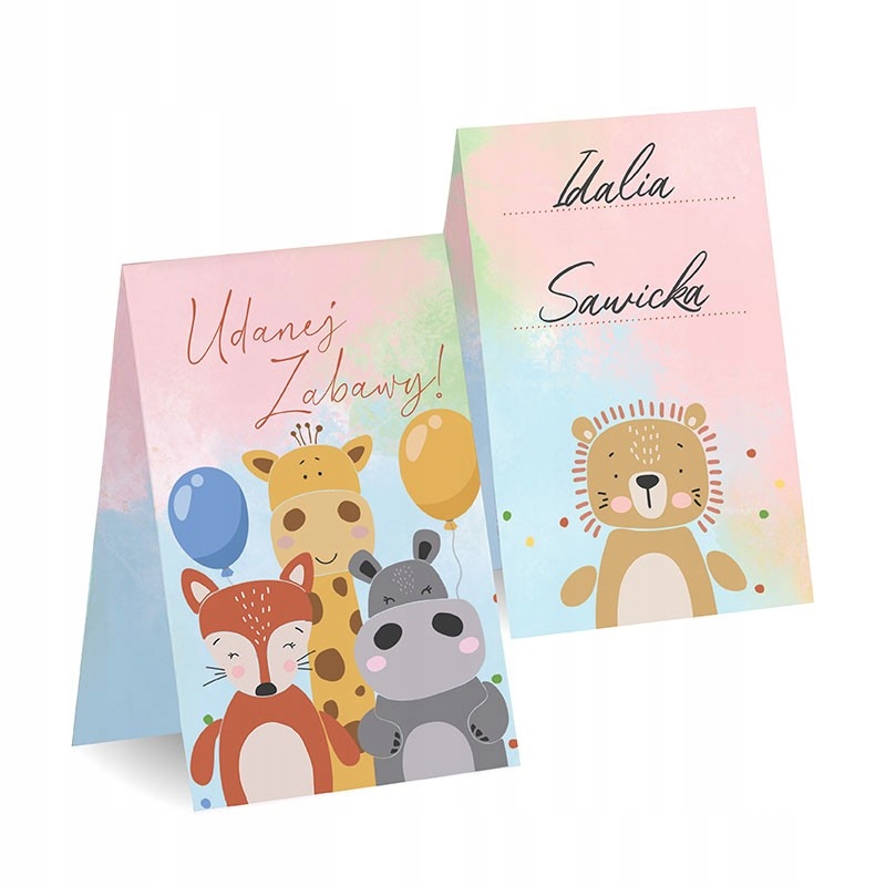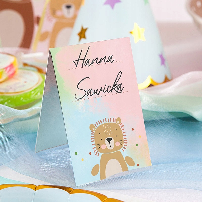 Красивые открытки, которые можно написать самостоятельно, идеально подходят для первого года/дня рождения ребенка. Изделие изготовлено из плотной высококачественной бумаги пастельных тонов. Животный мотив выглядит очень мило. Карты мест позволят приглашенным гостям быстро найти подходящее место за столом.