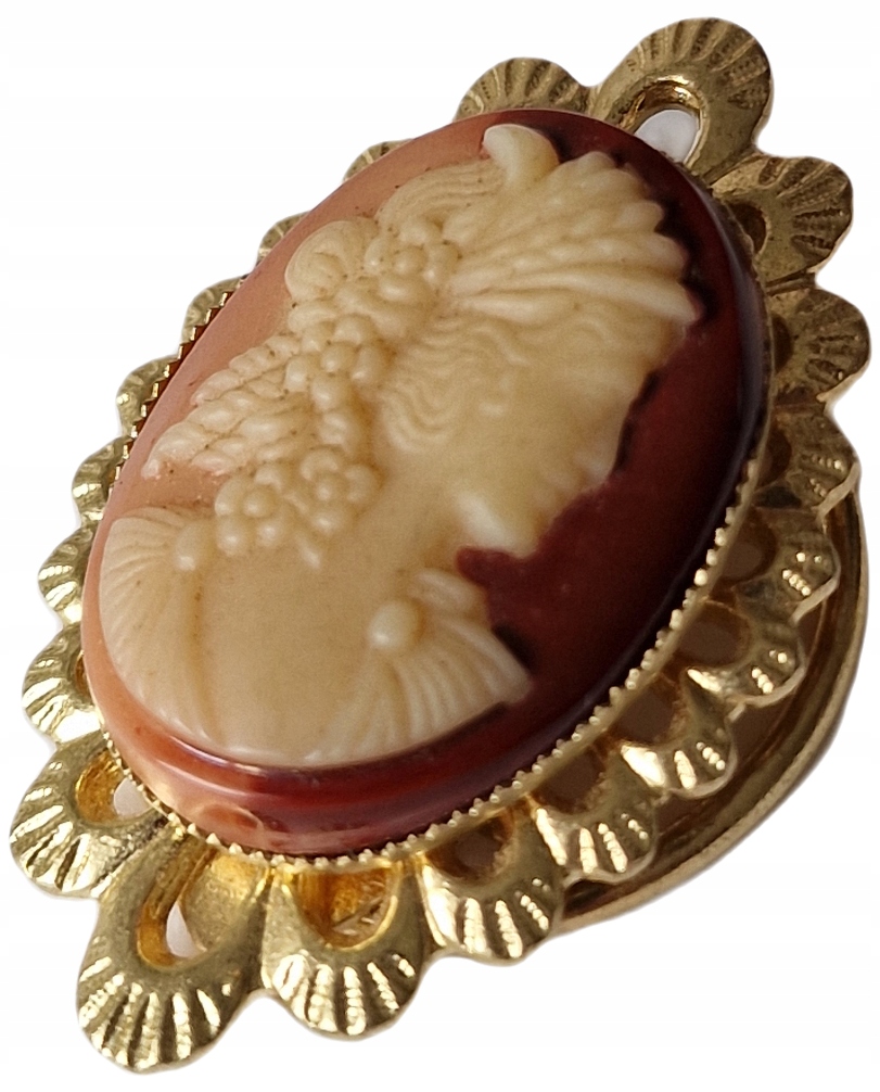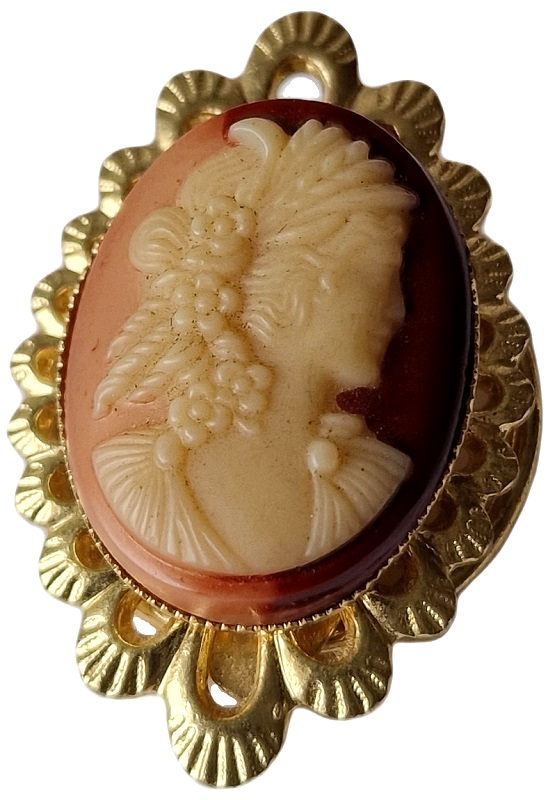 Камея из полирезина в минималистской золотой рамке. Каркас изготовлен из латуни, а не отлит, как у большинства современных изделий.