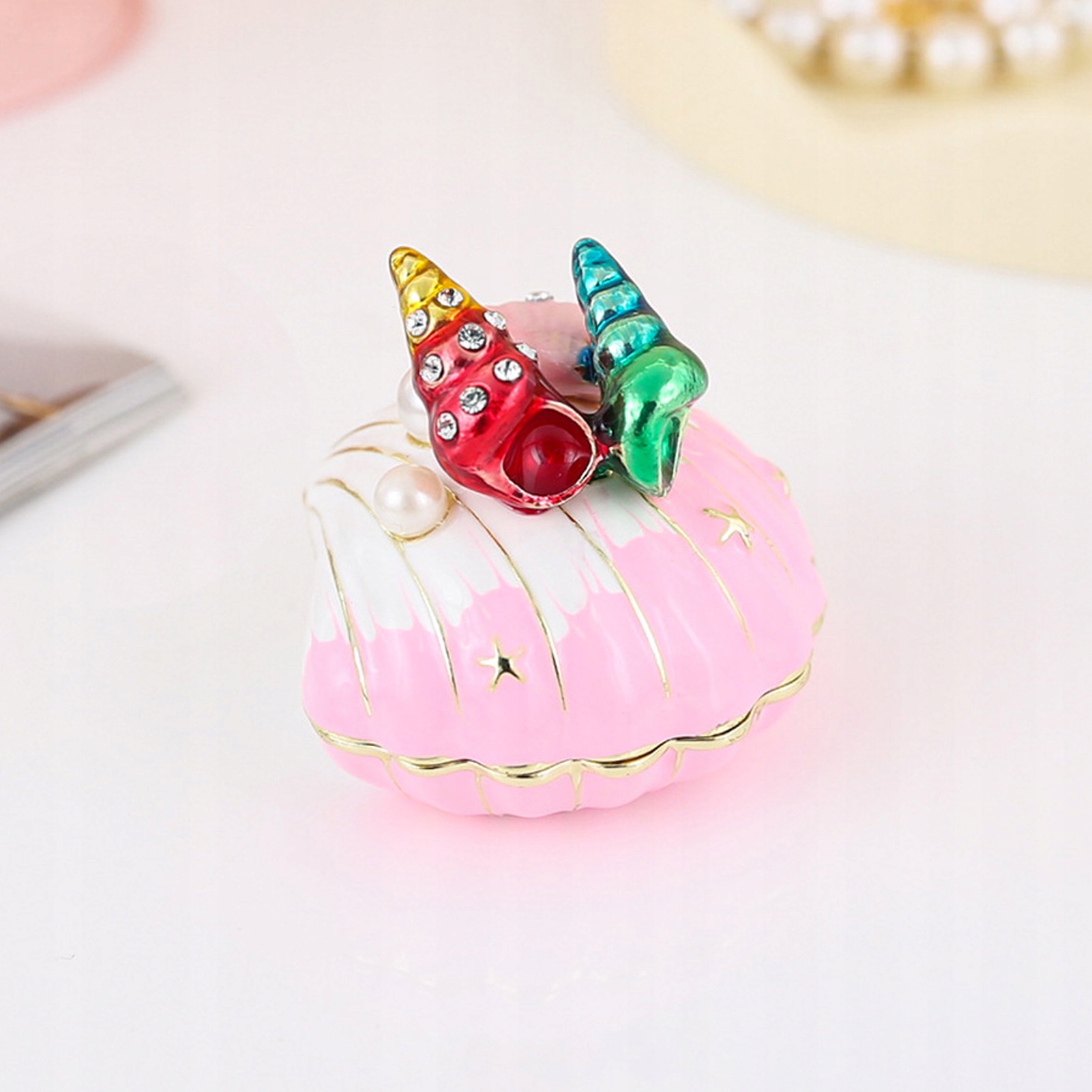 2. Антикварные украшения: сама морская шкатулка для драгоценностей служит изысканным украшением. Яркий цвет и яркая форма станут отличным домашним декором для биотелгета, стола и спальни.