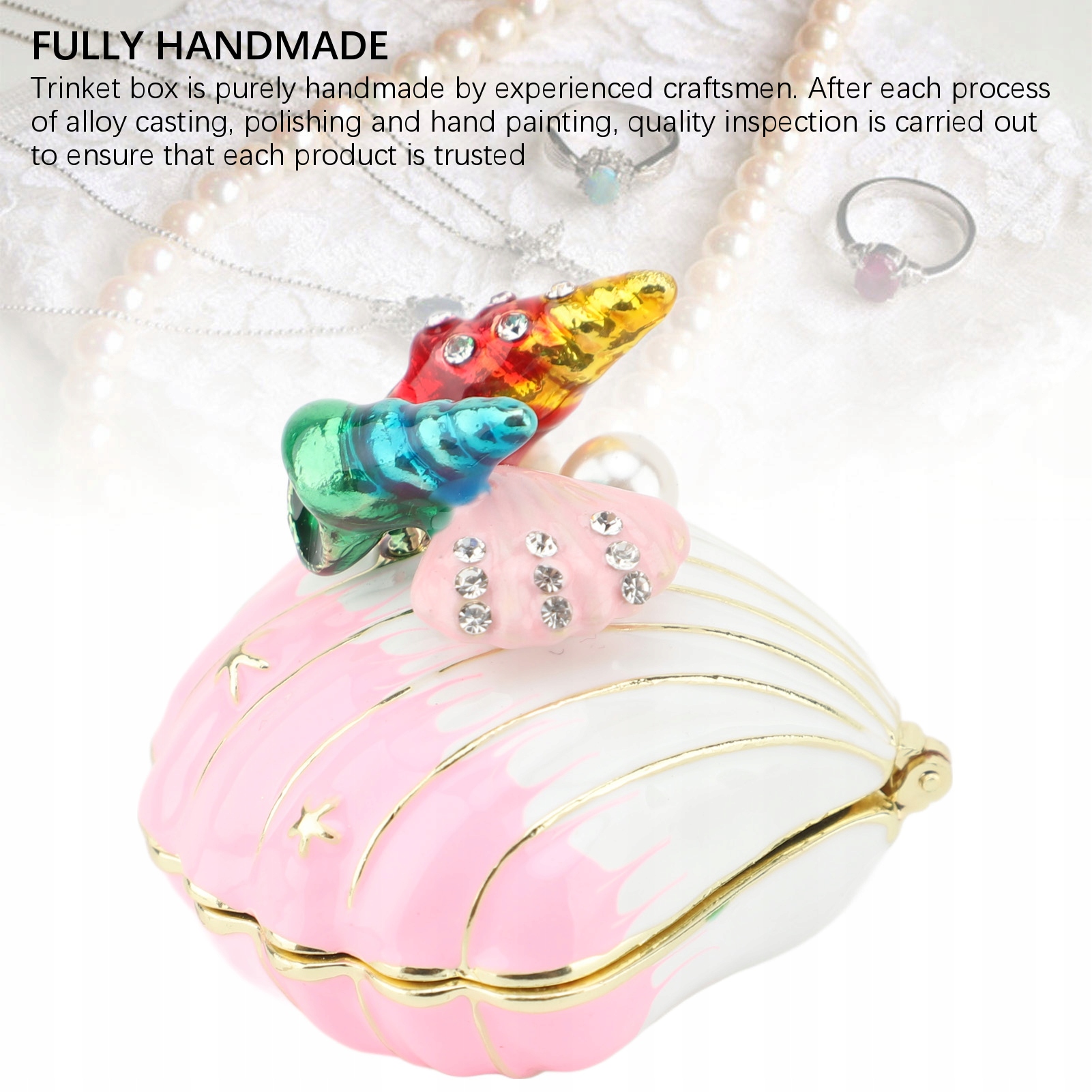 3. Полностью ручная работа: шкатулка для безделушек изготовлена исключительно опытными мастерами. После каждого процесса литья сплава, полировки и ручной окраски проводится проверка качества, чтобы обеспечить уверенность в каждом продукте.