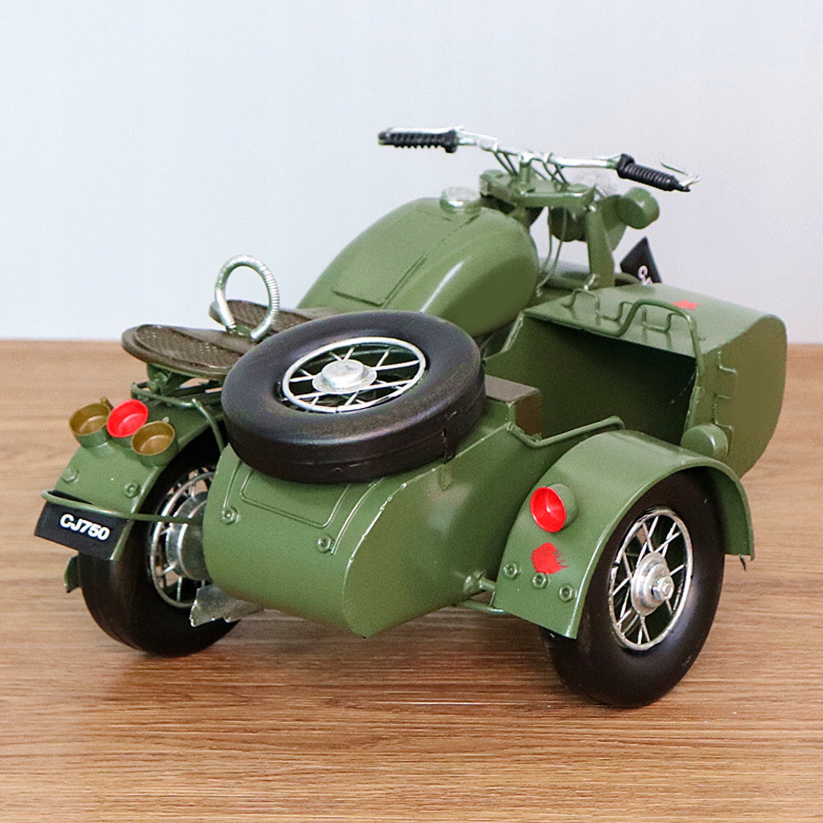1. Винтажный трехколесный мотоцикл: модель изготовлена вручную из высококачественного железа, что обеспечивает долговечность и изысканные детали. Каждая замысловатая деталь тщательно проработана с винтажным очарованием.