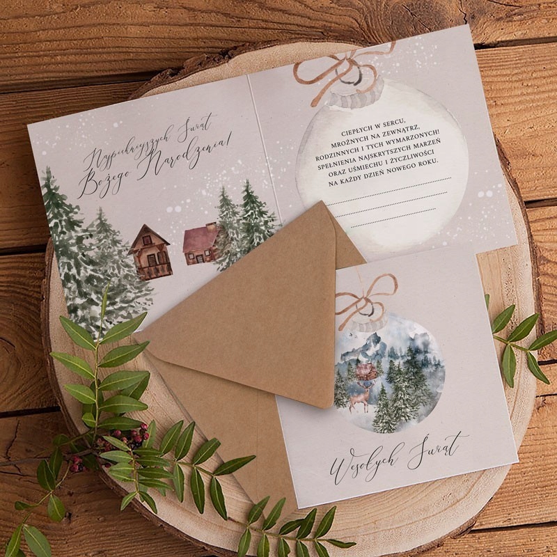 Красивая рождественская открытка, которая станет отличным дополнением к рождественскому подарку. Он идеально подходит для подарков близким, а также сотрудникам или ключевым бизнес-клиентам. Красивая декоративная графика, украшающая открытку, порадует каждого ее получателя.