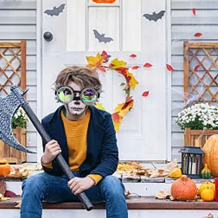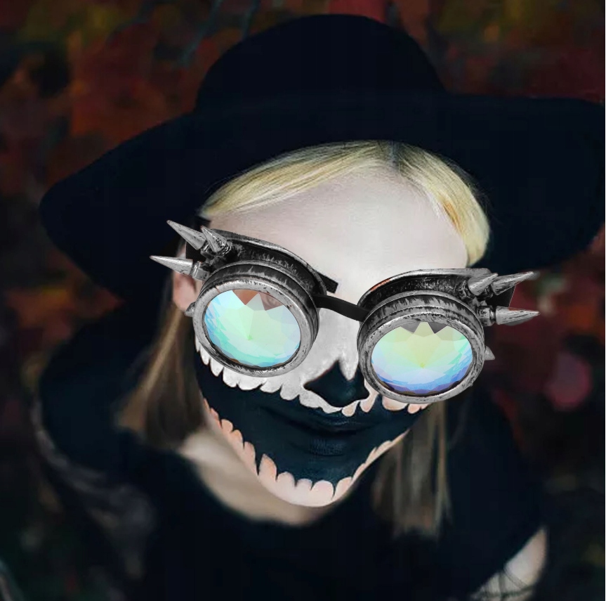 2. СТИЛЬ STMPUNK: очки-калейдоскопы для Хэллоуина выполнены в стиле stmpunk, линзы из радужных кристаллов, крутые, красивые и полные индивидуальности.