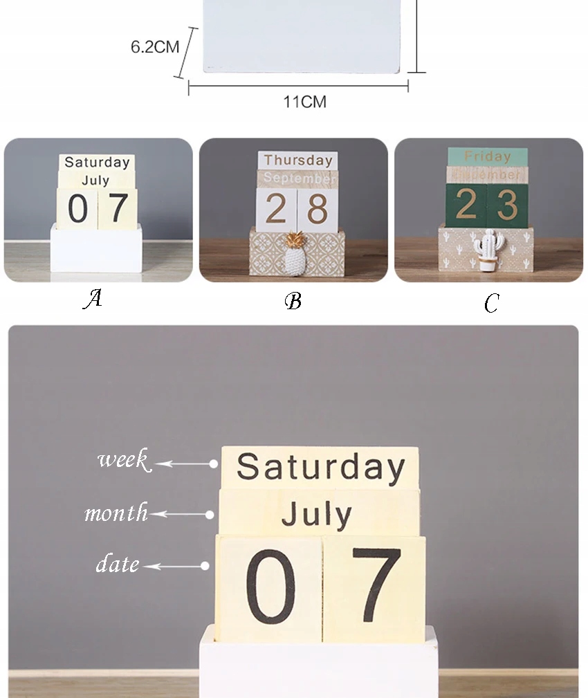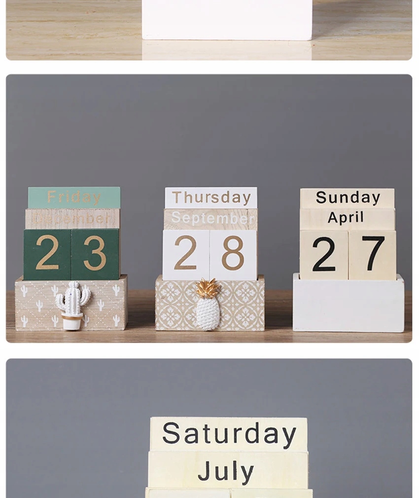 Вінтажний дерев'яний вічний календар Eternal Block Planner Фотореквізит
