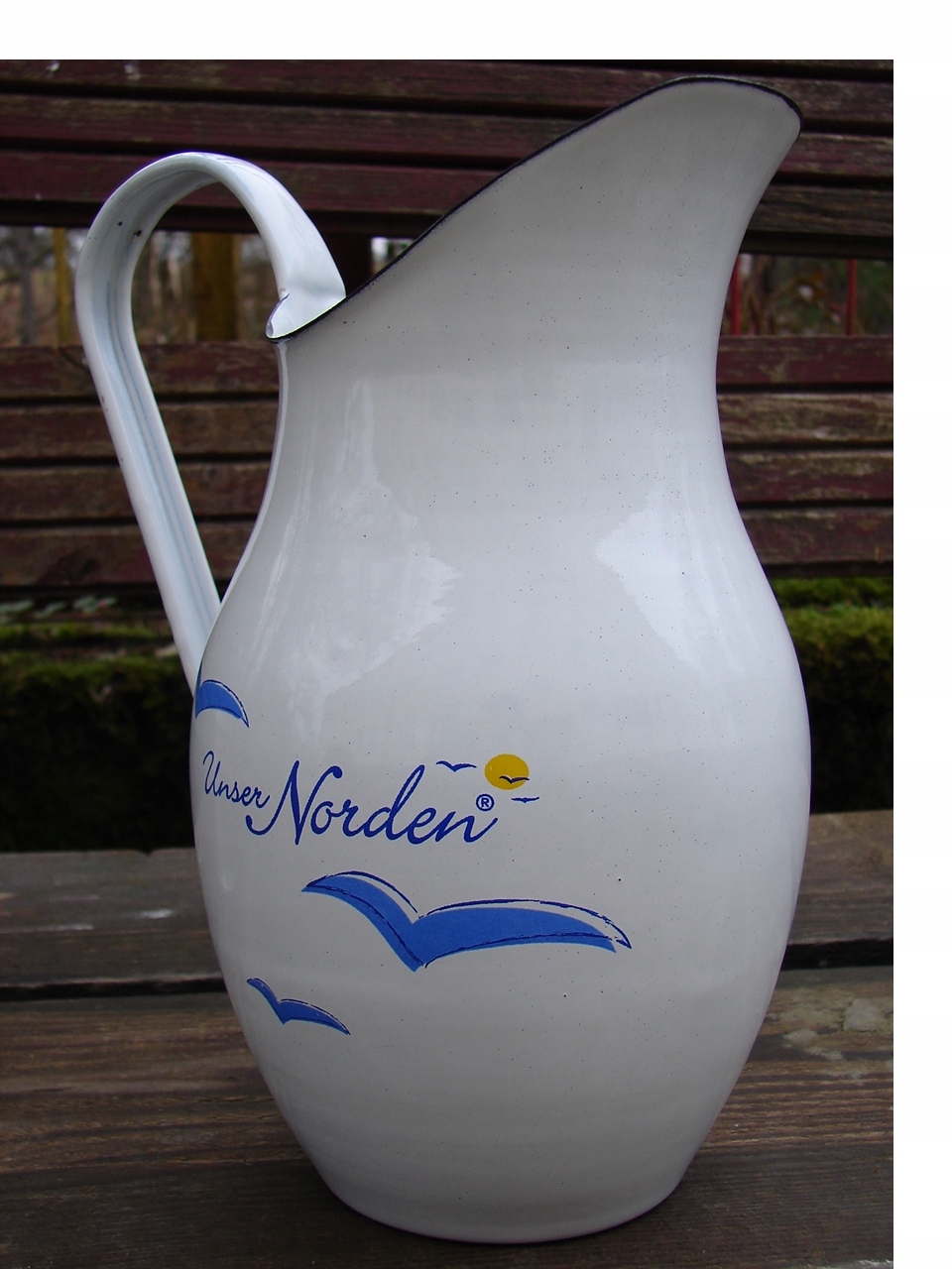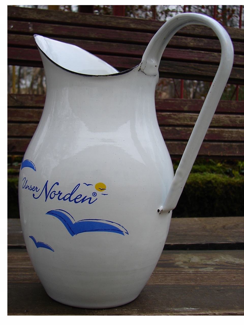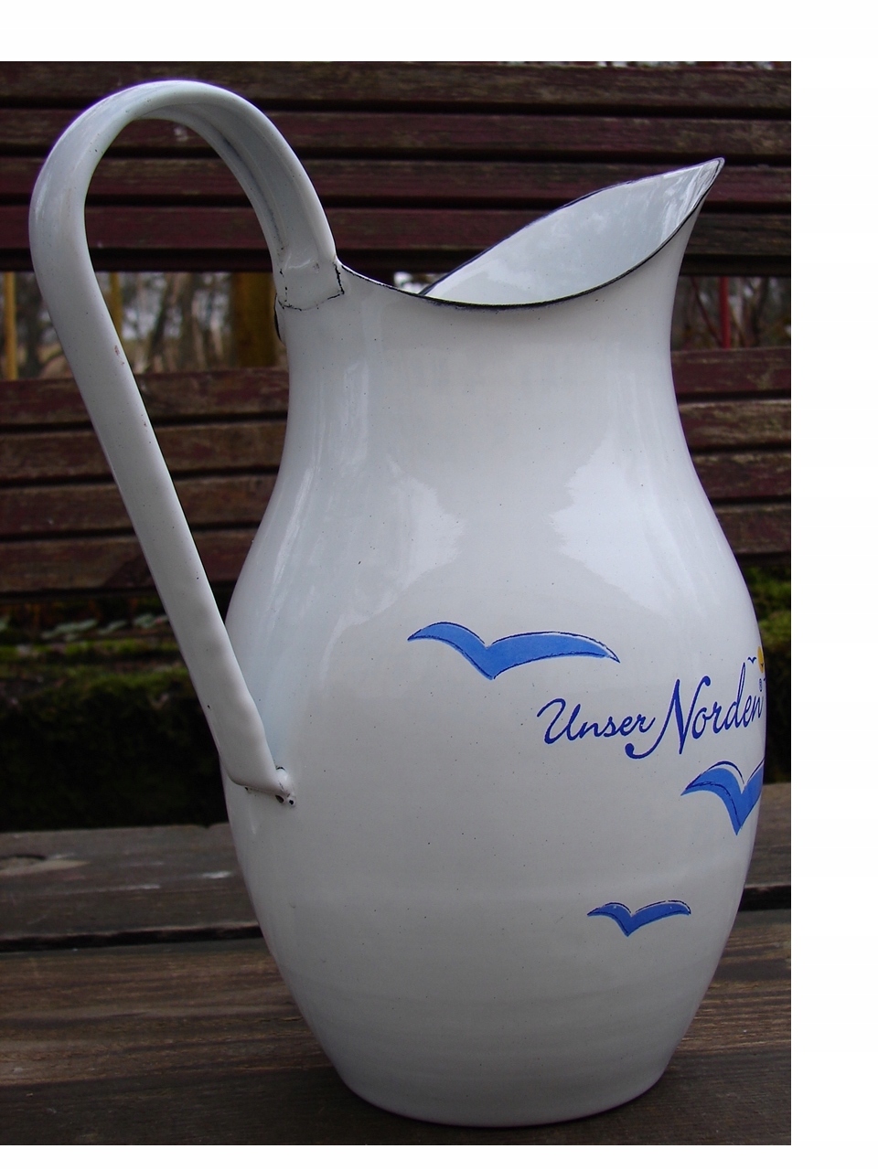 Винтажный эмалированный кувшин для воды емкостью 2,20 литра.