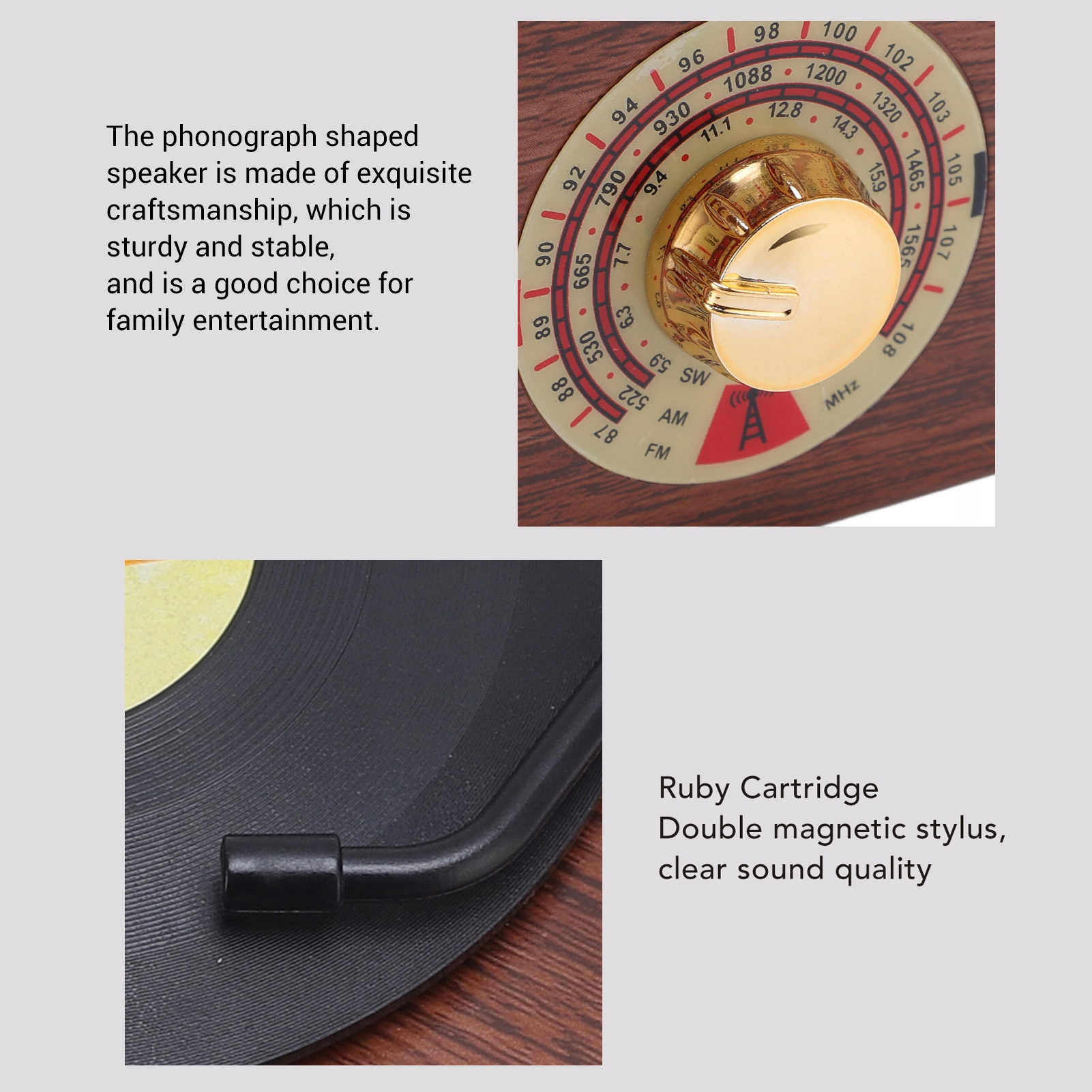 5. Изысканное мастерство: динамик фонографа изготовлен из изысканного мастерства, он прочный и стабильный и является хорошим выбором для семейного развлечения. Это одновременно мощное звуковое устройство и элегантный декоративный предмет.