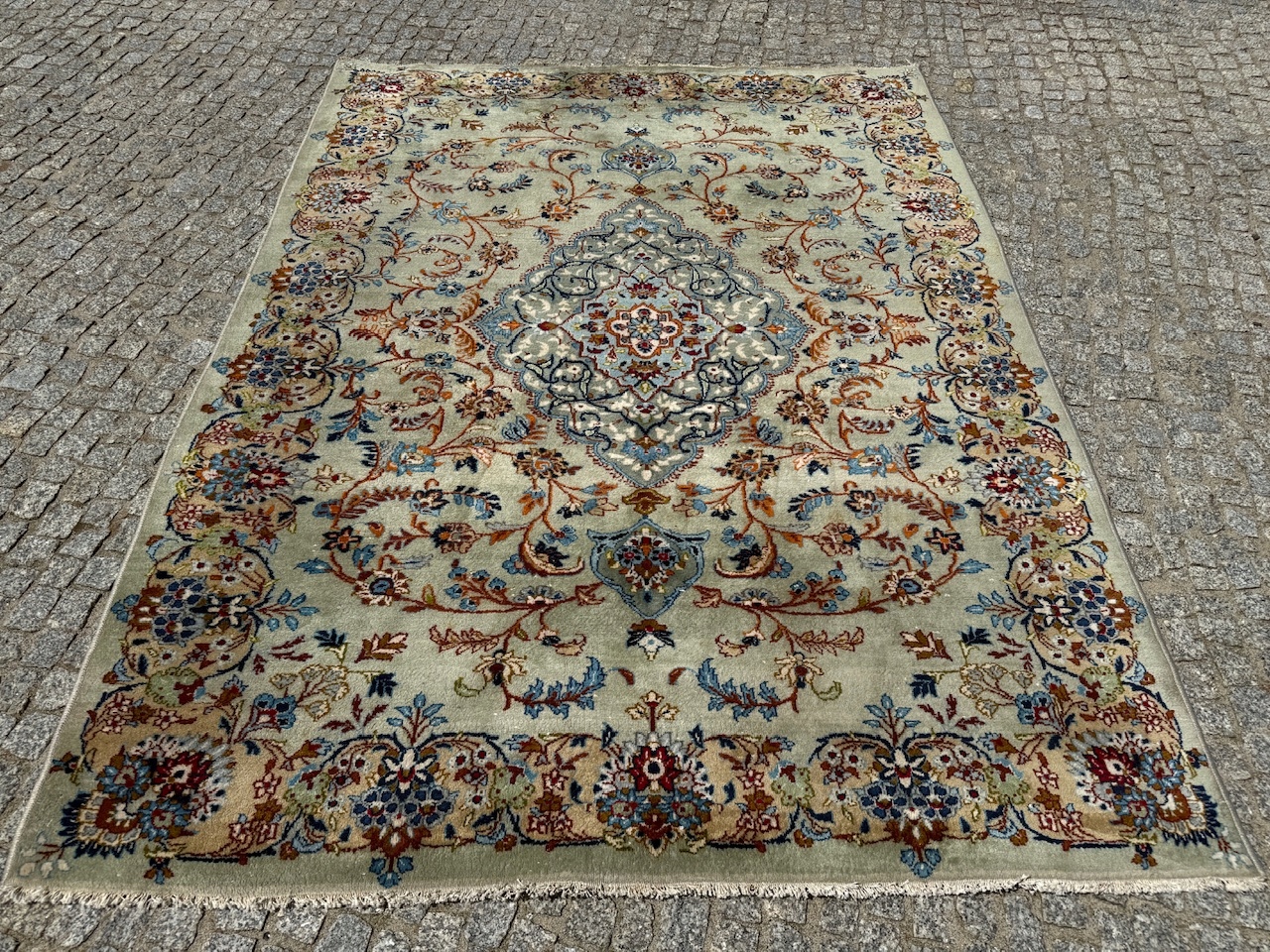 ПУНКТ: Персидский восточный ковер ручной работы, изготовленный в Иране из провинции Кешан. Имеет сертификат подлинности. В галерее до продажи она стоила почти 1800 евро, или около 8000 злотых. Редкие персидские узоры делают этот ковер подходящим для многих интерьеров. Название происходит от города, где они изготовлены.